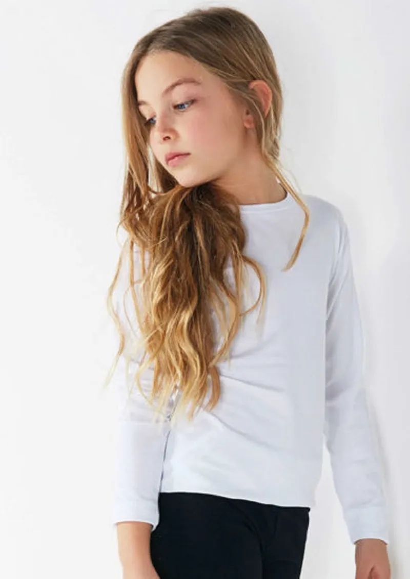 T-SHIRT MANICA LUNGA BIMBA JADEA. TG: 3/4 – 5/6 – 7/8 – 9/10 – 11/12 – 13/14. COLORE: NERO – GRIGIO – BIANCO – BLU. Prezzo unitario, confezione da 6 pezzi