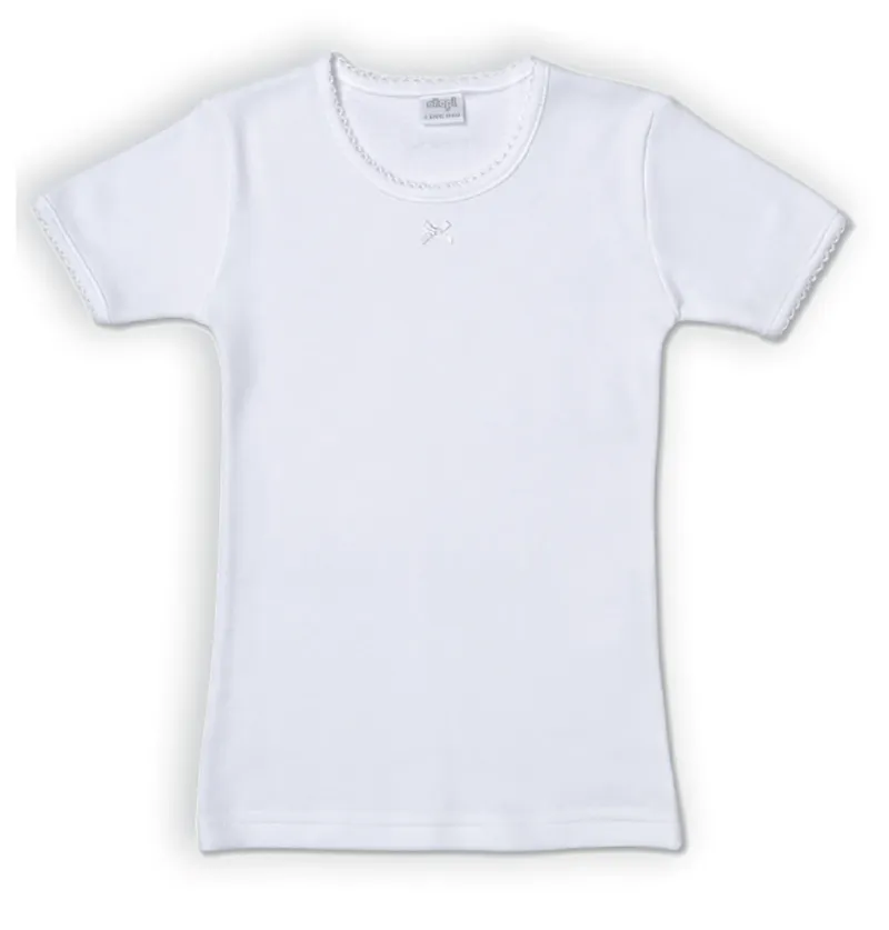 MAGLIETTA MEZZA MANICA IN COTONE INTERLOCK ELLEPI. TG: 2A – 3A – 4A – 5A – 6A – 8A – 10A – 12A – 14A – 16A. COLORE: BIANCO. Prezzo unitario, confezione da 6 pezzi