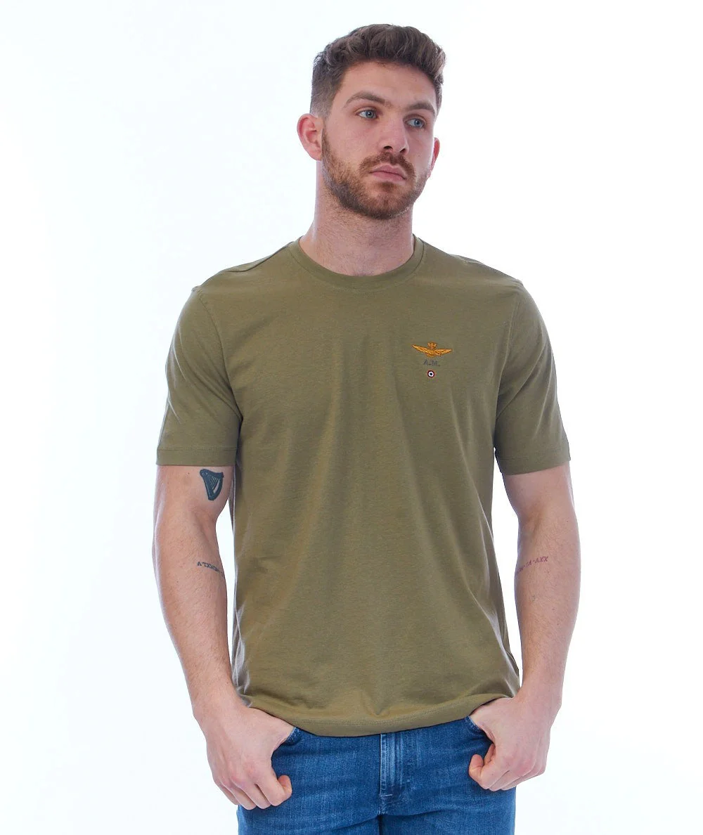 T-shirt basica di AERONAUTICA MILITARE in jersey di cotone con logo ricamato sul petto. Codice: TS1580J372 Colore: VERDE