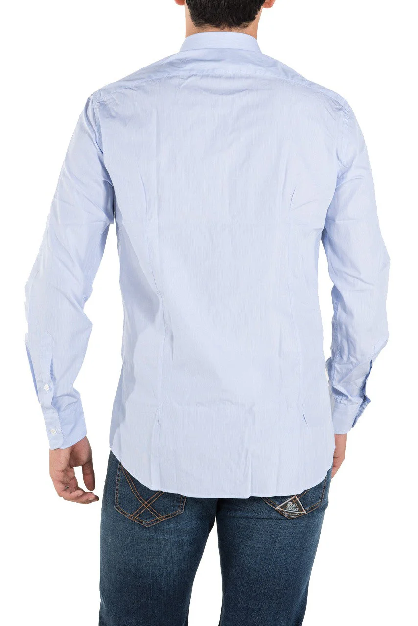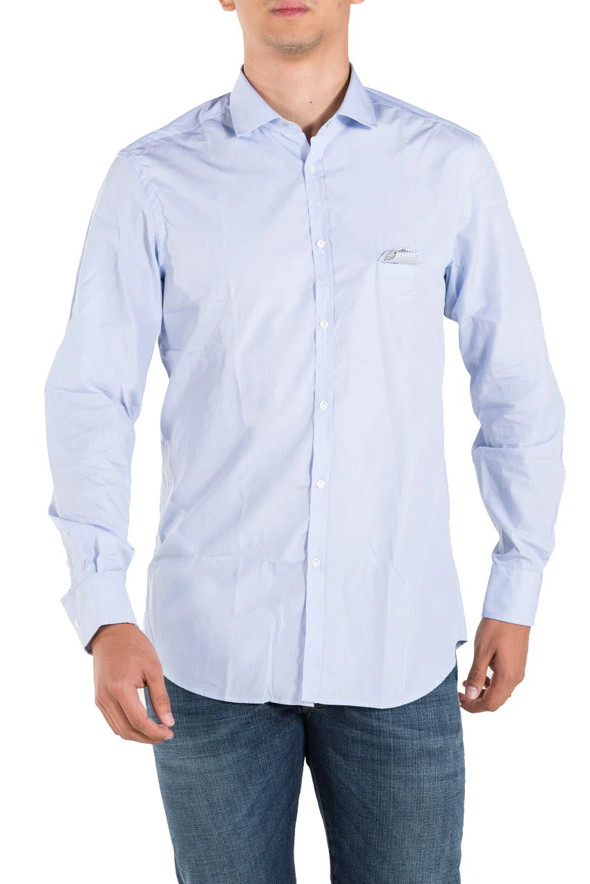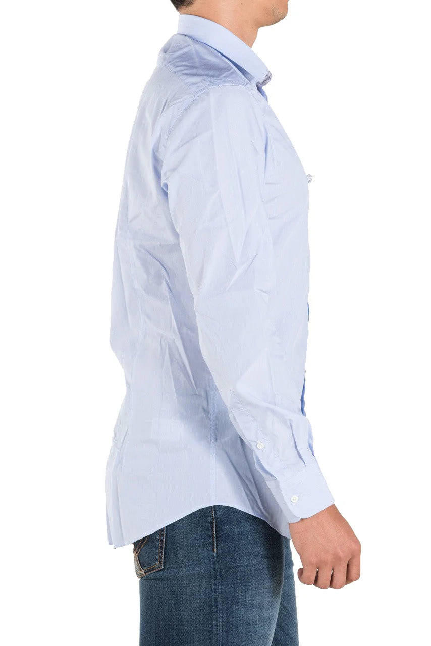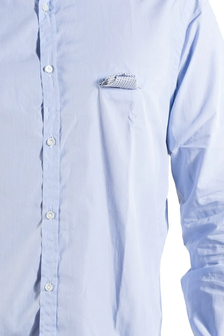 Camicia Aglini in cotone microrigato blu.
