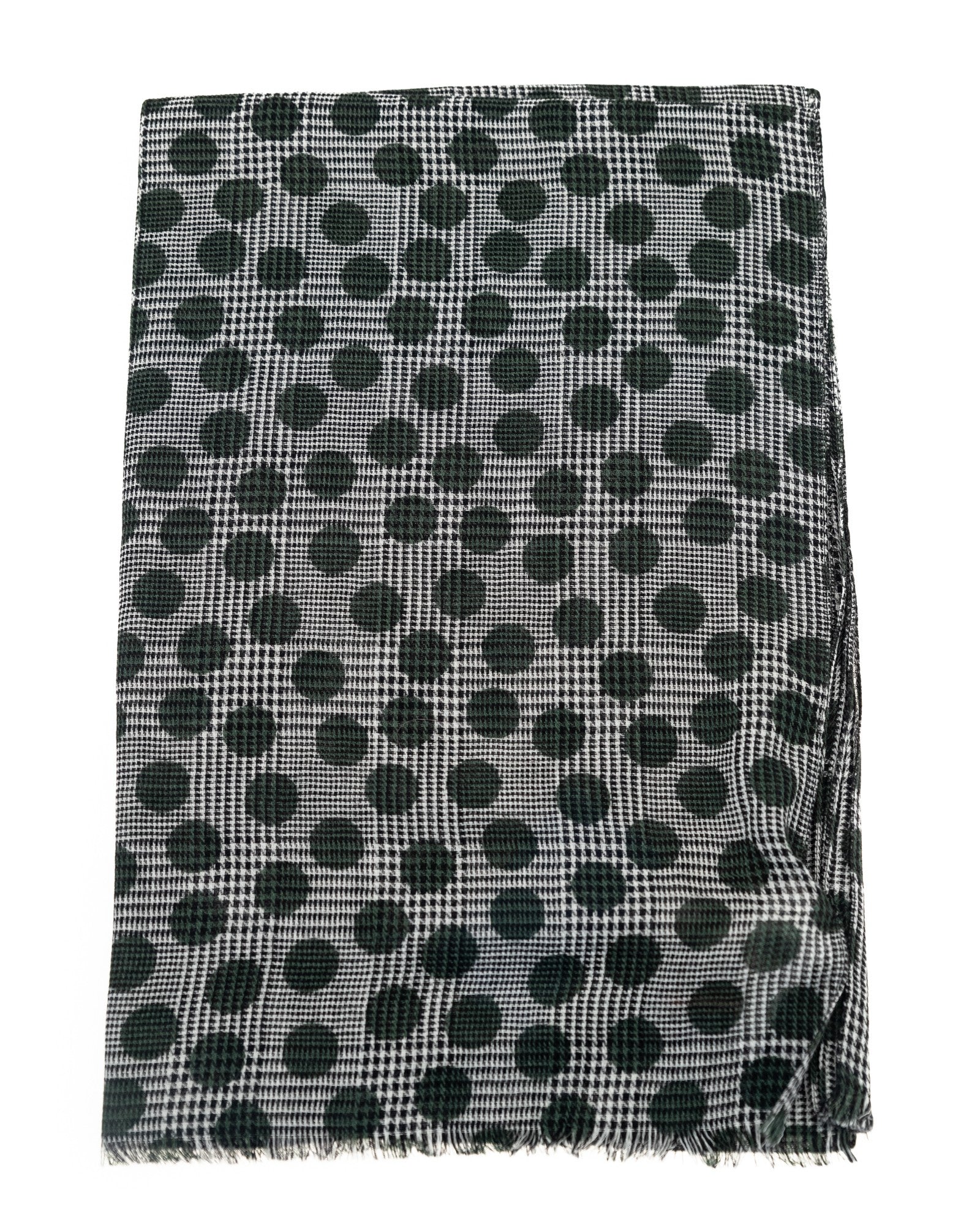 Pashmina sciarpa di Altea in lana e seta in fantasia pied du poule e pois grandi verdi. Dimensioni:60X180cm. Made in Italy