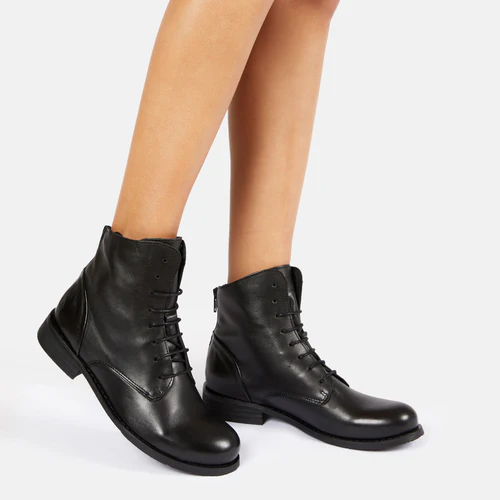 Stivaletto basso con zip posteriore e lacci stile anfibietto Il tacco è basso la calzata regolare. La qualità del prodotto è alta. Opzione pagamento rateale