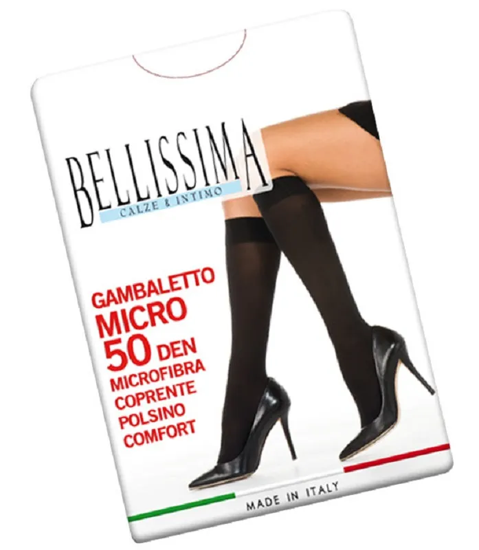 GAMBALETTO ELASTICIZZATO IN MICROFIBRA, COPRENTE, CON POLSINO COMFORT BELLISSIMA. TAGLIA UNICA. COLORE: MIELE – BLU – NERO. DEN: 50. Prezzo per paia, confezione da 12 paia