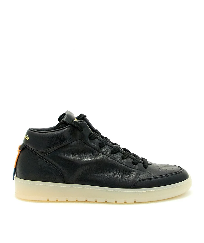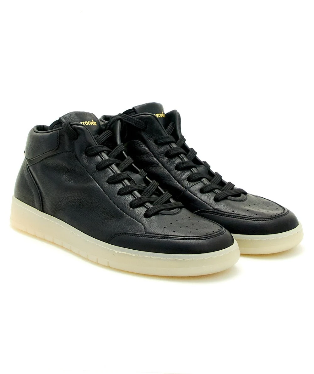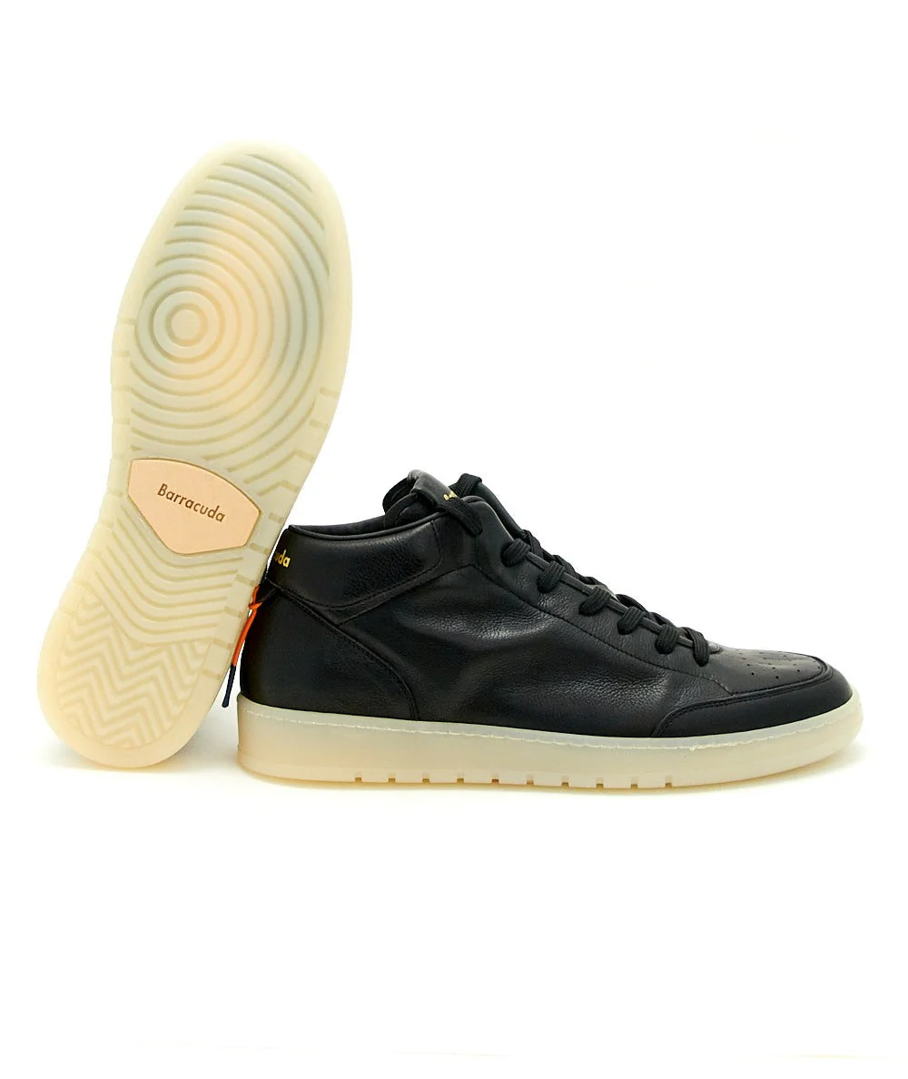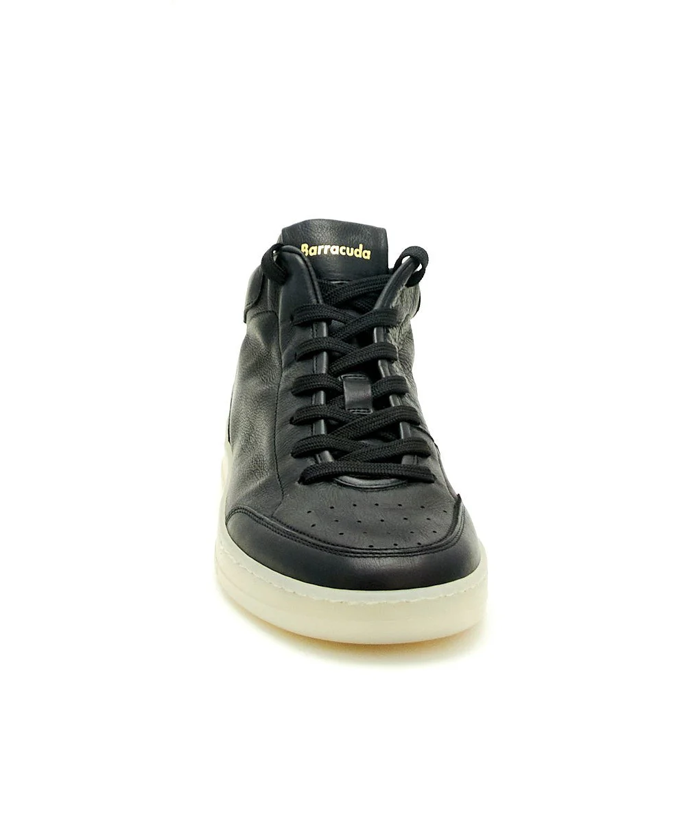 Sneakers GUGA altezza mid di BARRACUDA. Realizzate in pregiata pelle liscia di vitello con laccio elastico e logo Barracuda sul tallone. Leggera suola in gomma. Made in Italy. Codice: BU3413 Colore: NERO