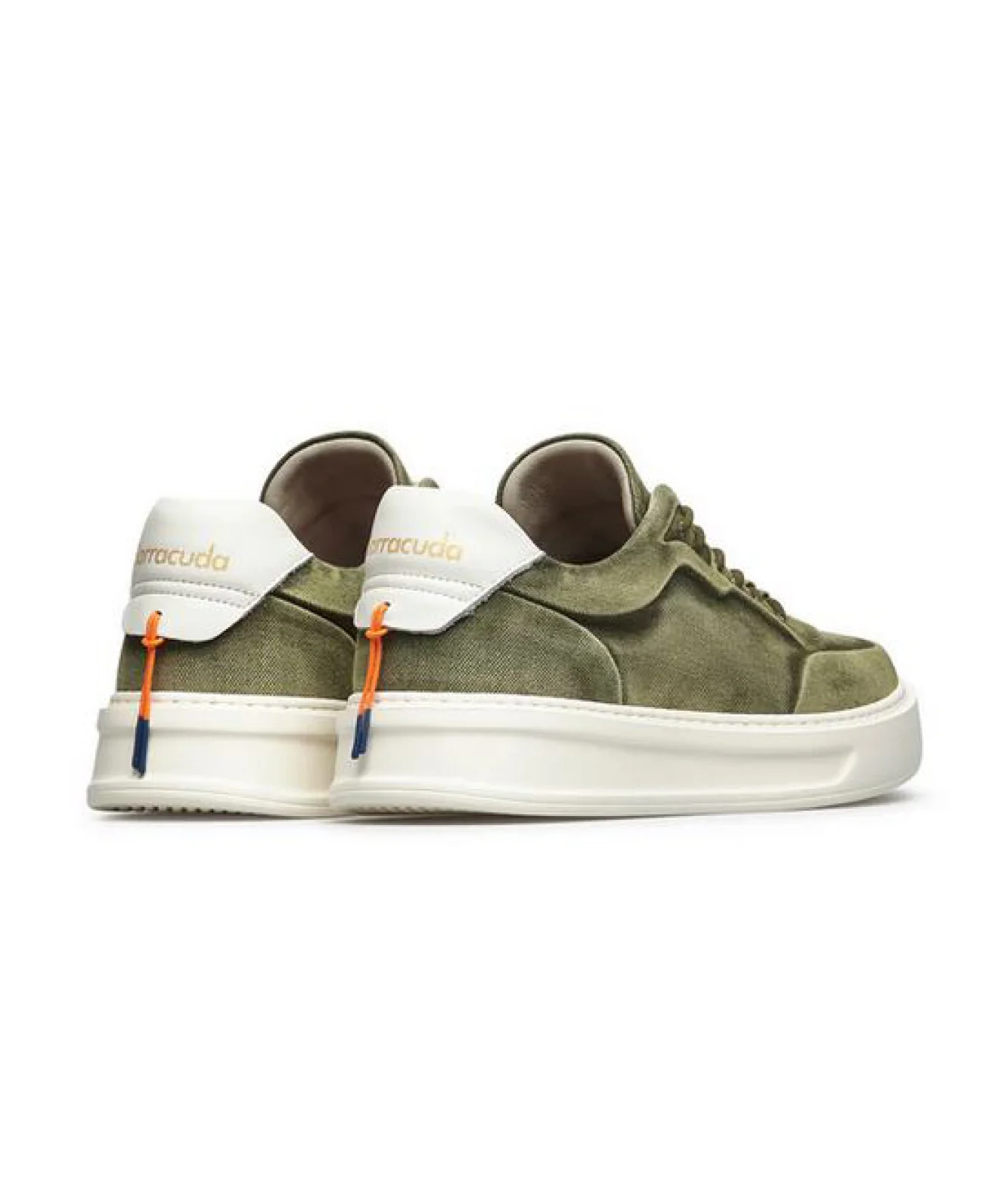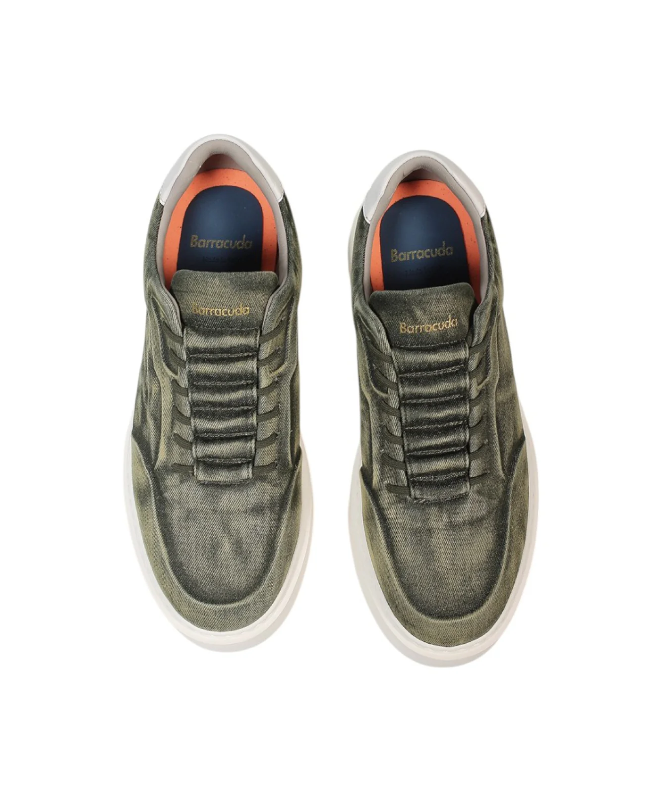 Sneakers unisex di BARRACUDA Modello PHOENIX slip onDa calzare senza l’utilizzo dei lacci Realizzate in tessuto denim effetto lavatoLogo Barracuda stampato sul tallone e sulla linguetta Laccio elastico arancione a contrasto sul retro Lacci a vistaPassanti tono su tono Fondo leggerissimo in gomma EVA Made in Italy Modello: PHOENIX Codice: BU3510 Phoenix Colore: Verde Militare