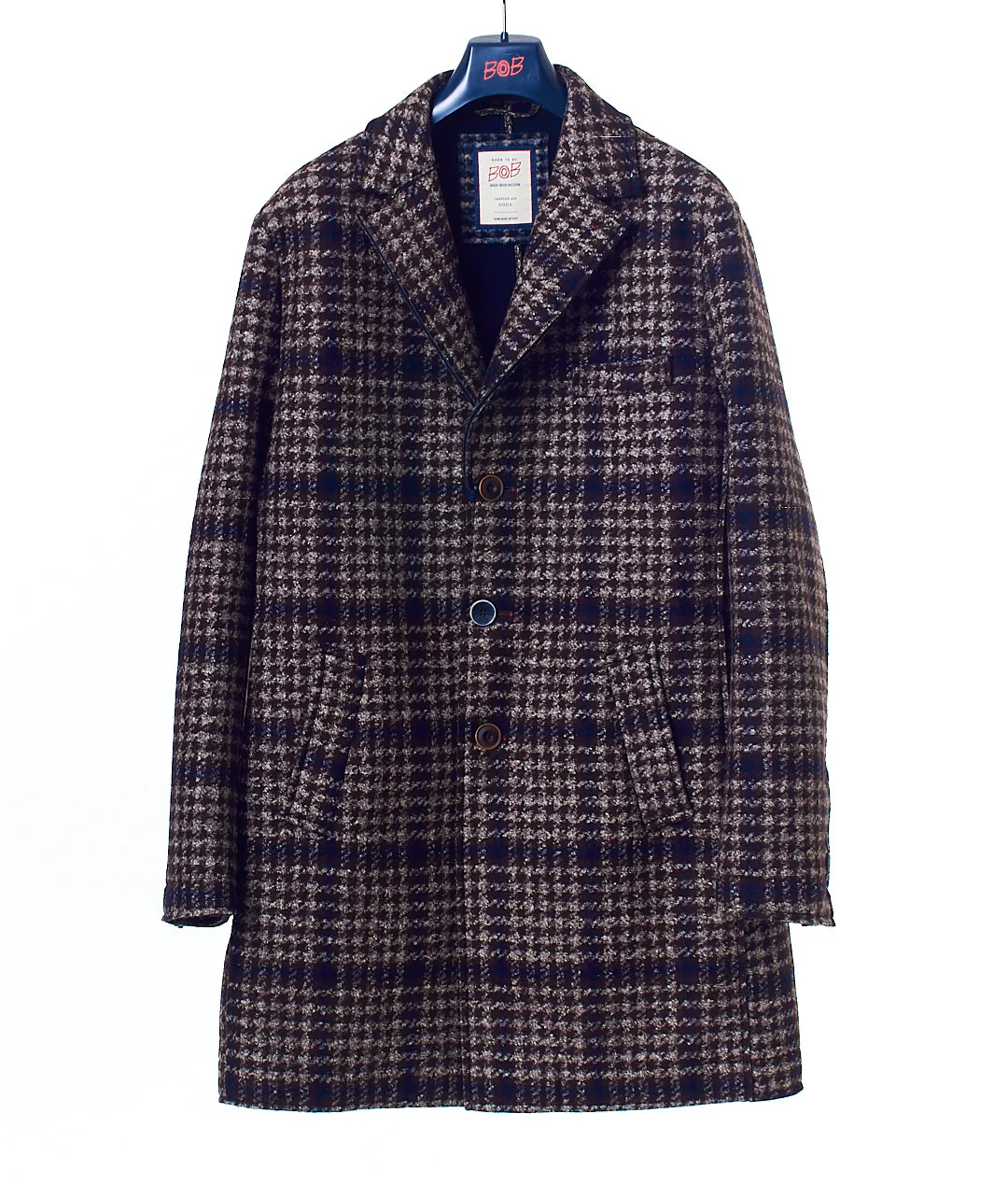 Cappotto di BOB in misto lana con fantasia pied de poule. Made in Italy. Codice: ANDY398/T398 Colore: MARRONE/BLU