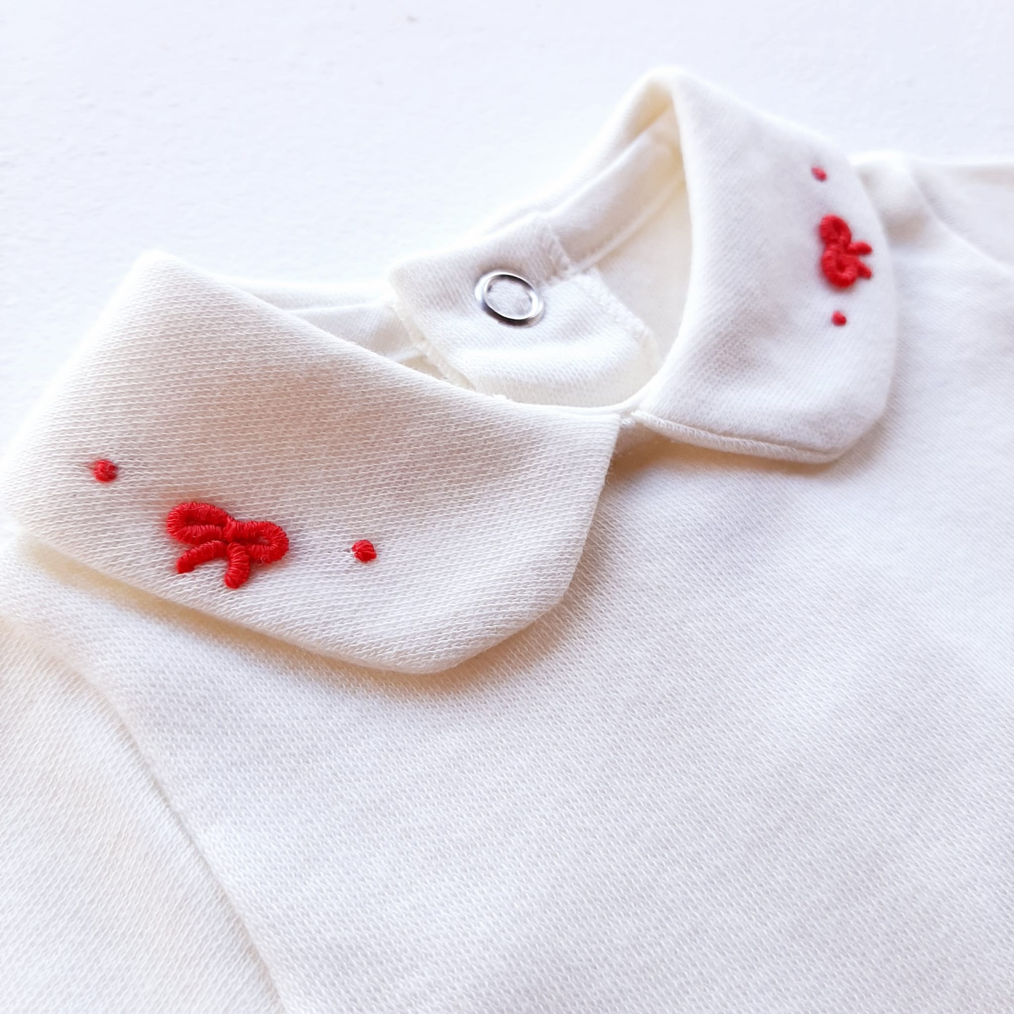 Il nostro body unisex versione natalizia è realizzato in soffice caldo cotone, ideale per essere indossato sotto tutine, completini e maglioncini! Il colletto è ricamato a mano con dolci fiocchetti e pois di colore rosso. Un’idea regalo perfetta per il suo primo Natale! 🎅🎄 Caratteristiche 100% caldo cotone Ricamato a mano Lavaggio a mano a basse temperature Made in Italy