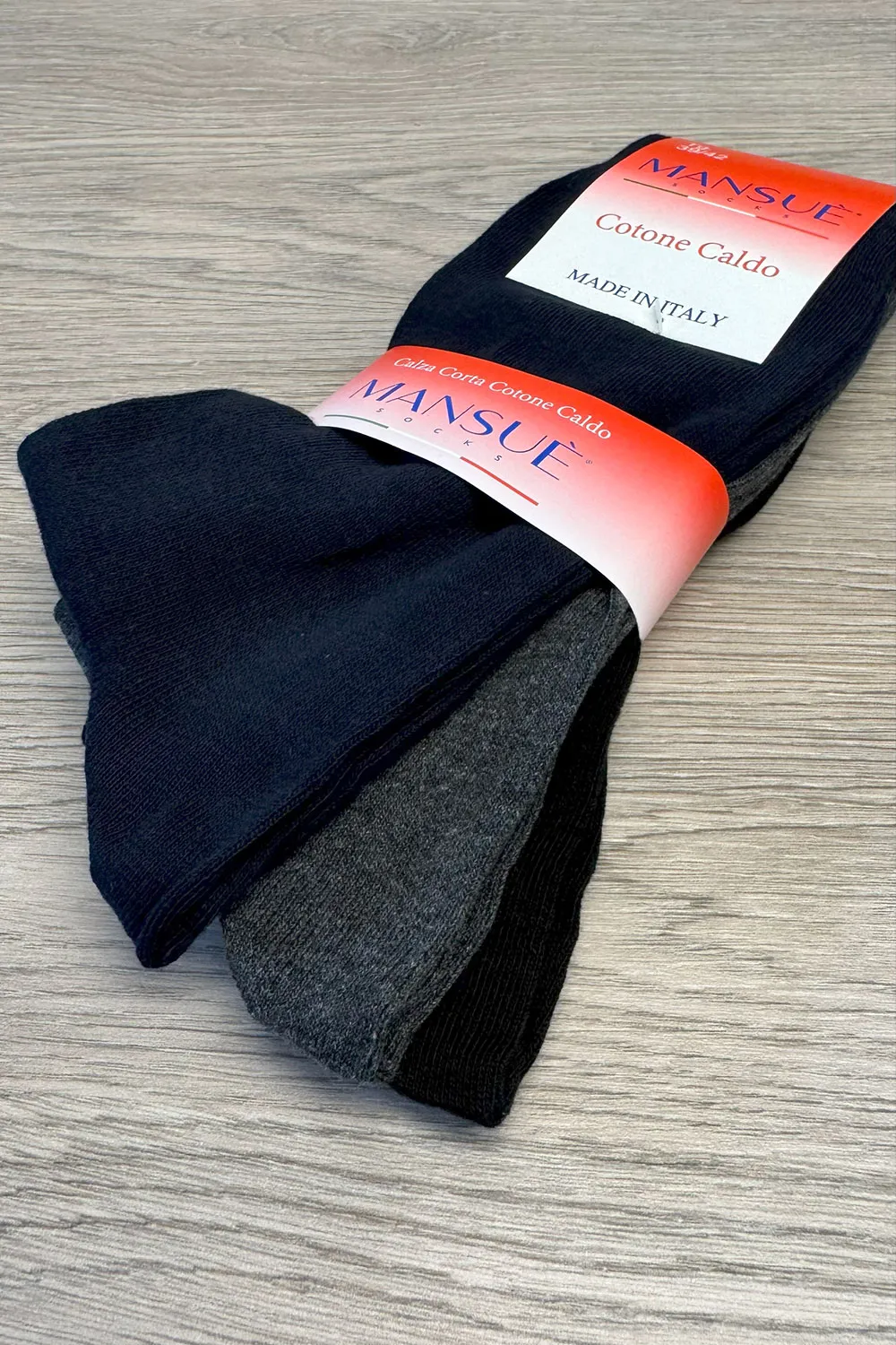 MANSUE’ CALZA CORTA 100% CALDO COTONE. TG: 39/42 – 43/46. COLORE: NERO – BLU – FRANCESE(BLU; NERO; ANTRACITE). Prezzo per paia, confezione da 12 paia