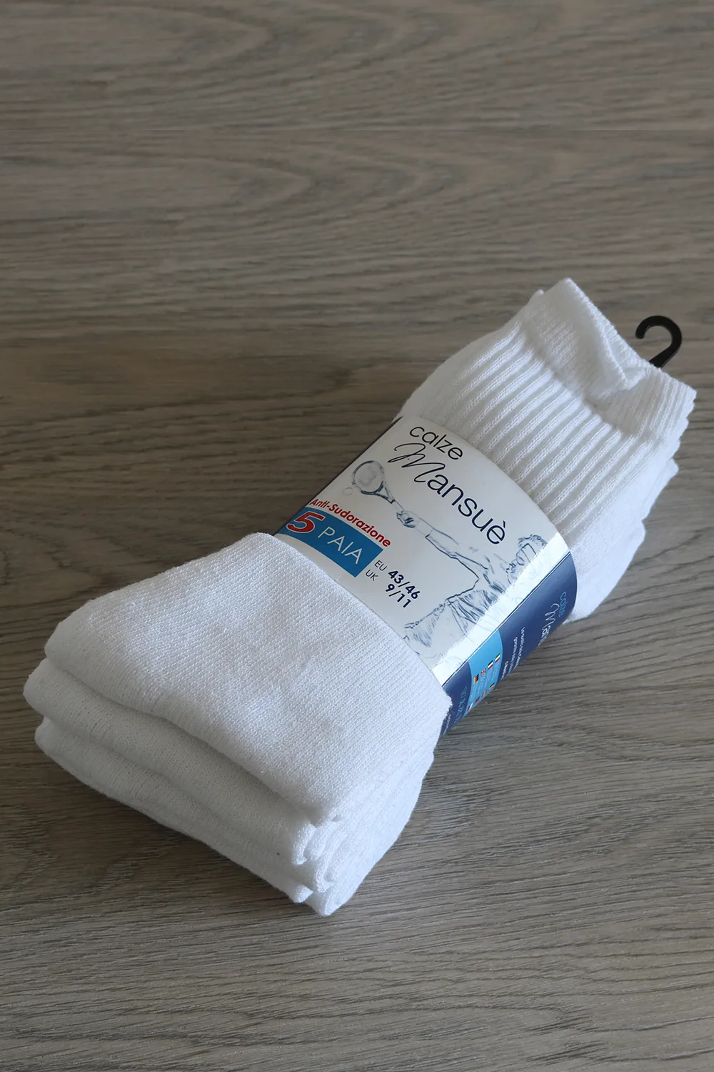 MANSUE’ CALZA TENNIS ANTISUDORAZIONE 90% COTONE 10% POLIESTERE . TG: 39/42 – 43/46. COLORE: BIANCO – GRIGIO – NERO – BLU. PENTAPACK. Prezzo pentapack