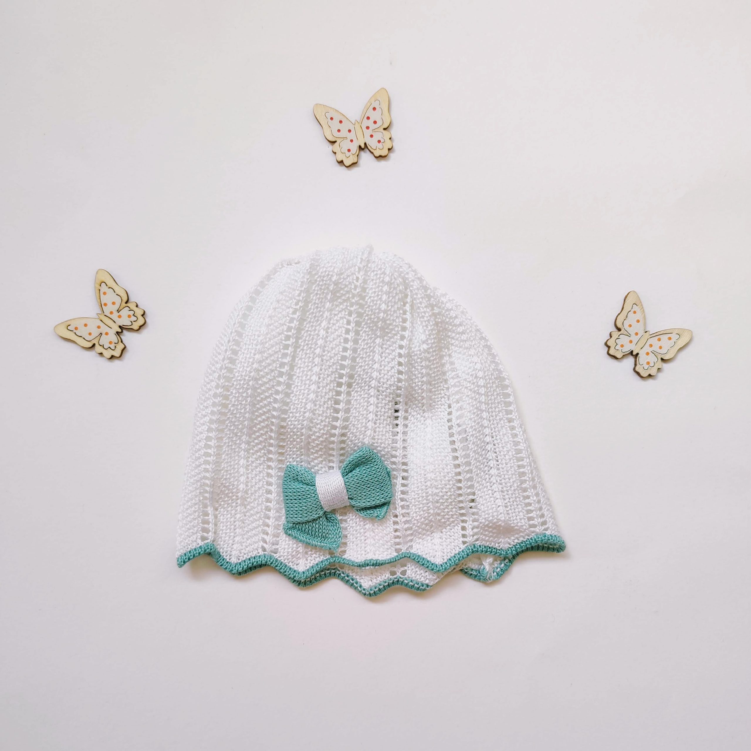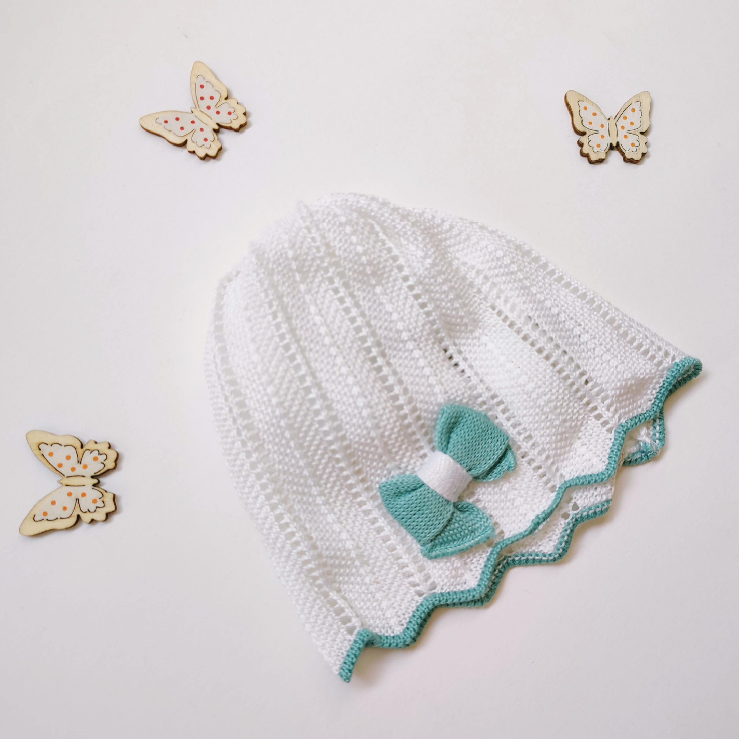 🌿Spring Summer Collection 2024 🌼 Cappellino bianco in filo di scozia extrafine con orlino smerlato verde acqua e trama traforata, con fiocchetto centrale. Fresco, delicato, verde acqua! Abbinalo ai nostri completini💚 100% cotone Ricamato a mano Lavaggio a mano a basse temperature Made in Italy