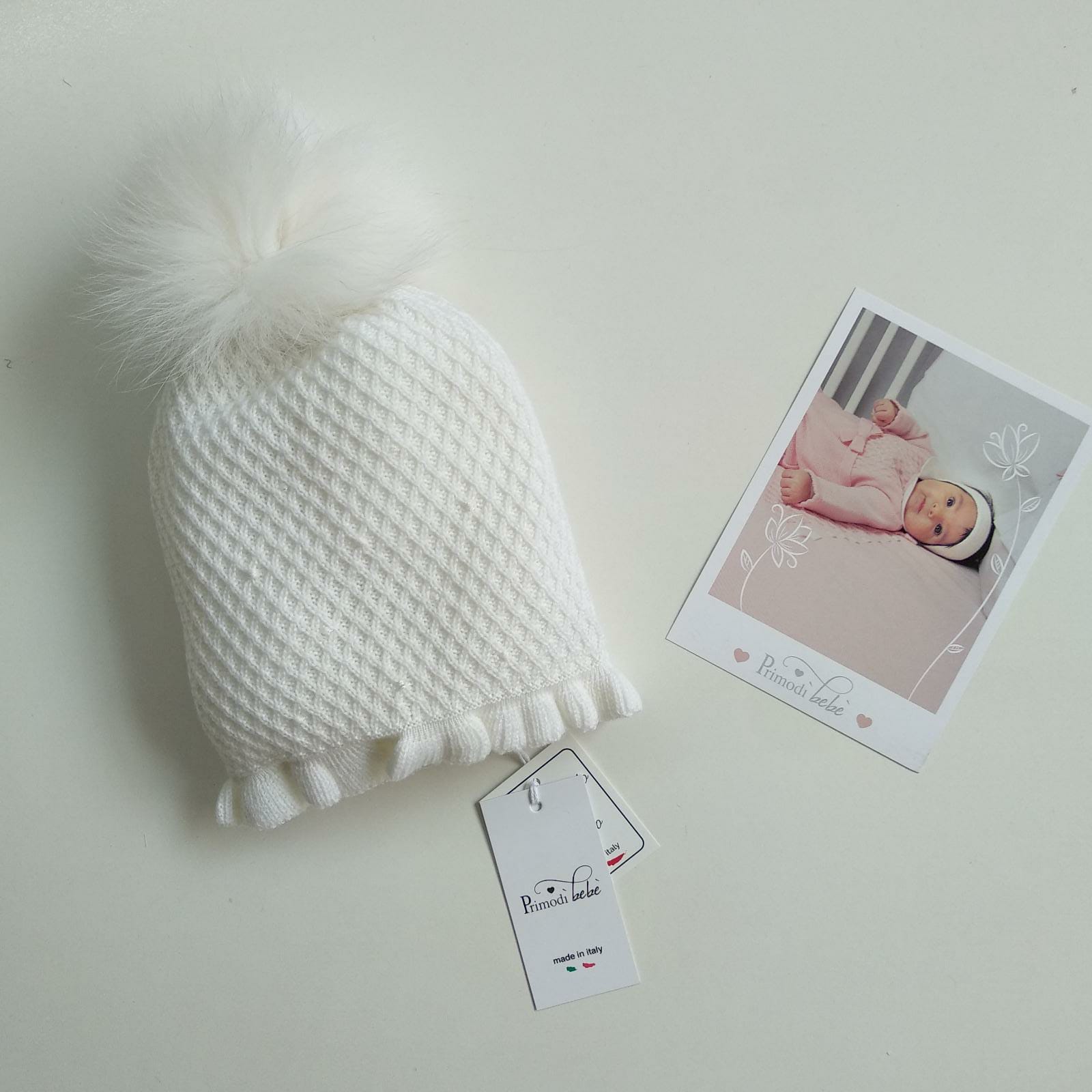 Cappellino latte nido d’ape e pelliccia