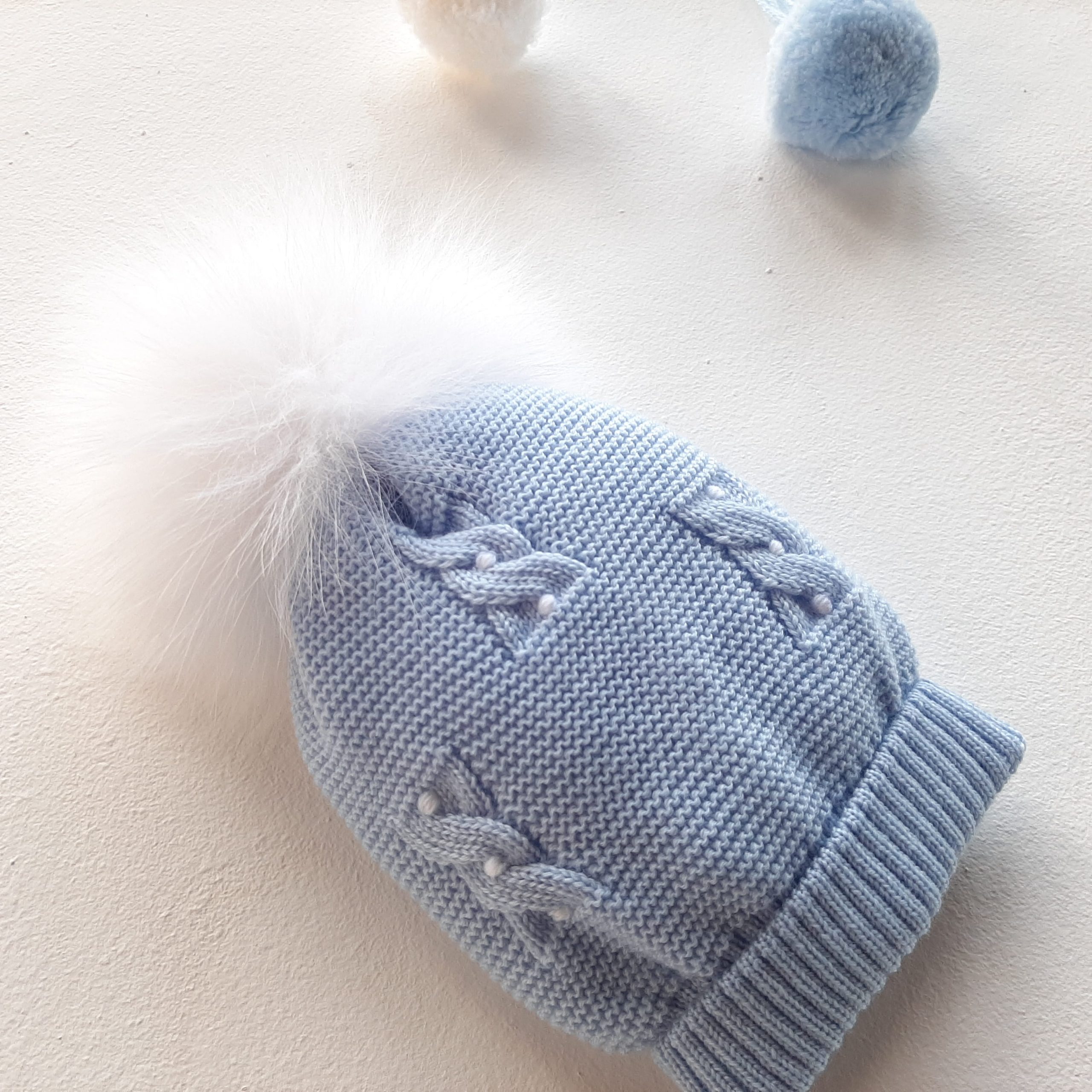 Per la linea I classici di Primodì bebè, un delicato cappellino color cielo forte in 100% lana merino con un design di tre mini trecce adornate da pois latte ricamati a mano e pom pom in pelliccia. Classico e intramontabile. 100% lana merino extra-fine Ricamato a mano Lavaggio a mano a basse temperature. Consulta la sezione Cura dei capi ❤️ Made in Italy