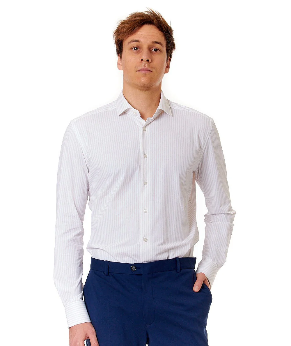Camicia con vestibilità tailor fit di CELLINI BY XACUS in leggero tessuto tecnico “Active”, traspirante, no stiro, 3D stretch e ad asciugatura rapida. Made in Europe. Codice: ACT558ML/61626.001 Colore: BIANCO/BEIGE