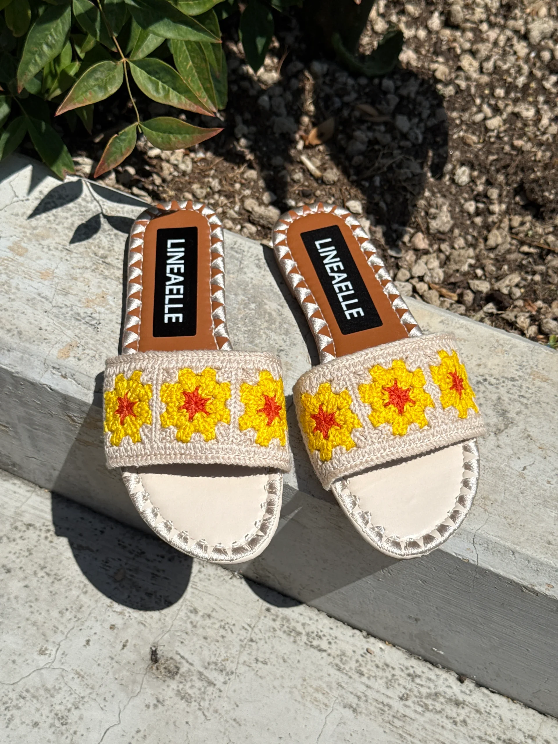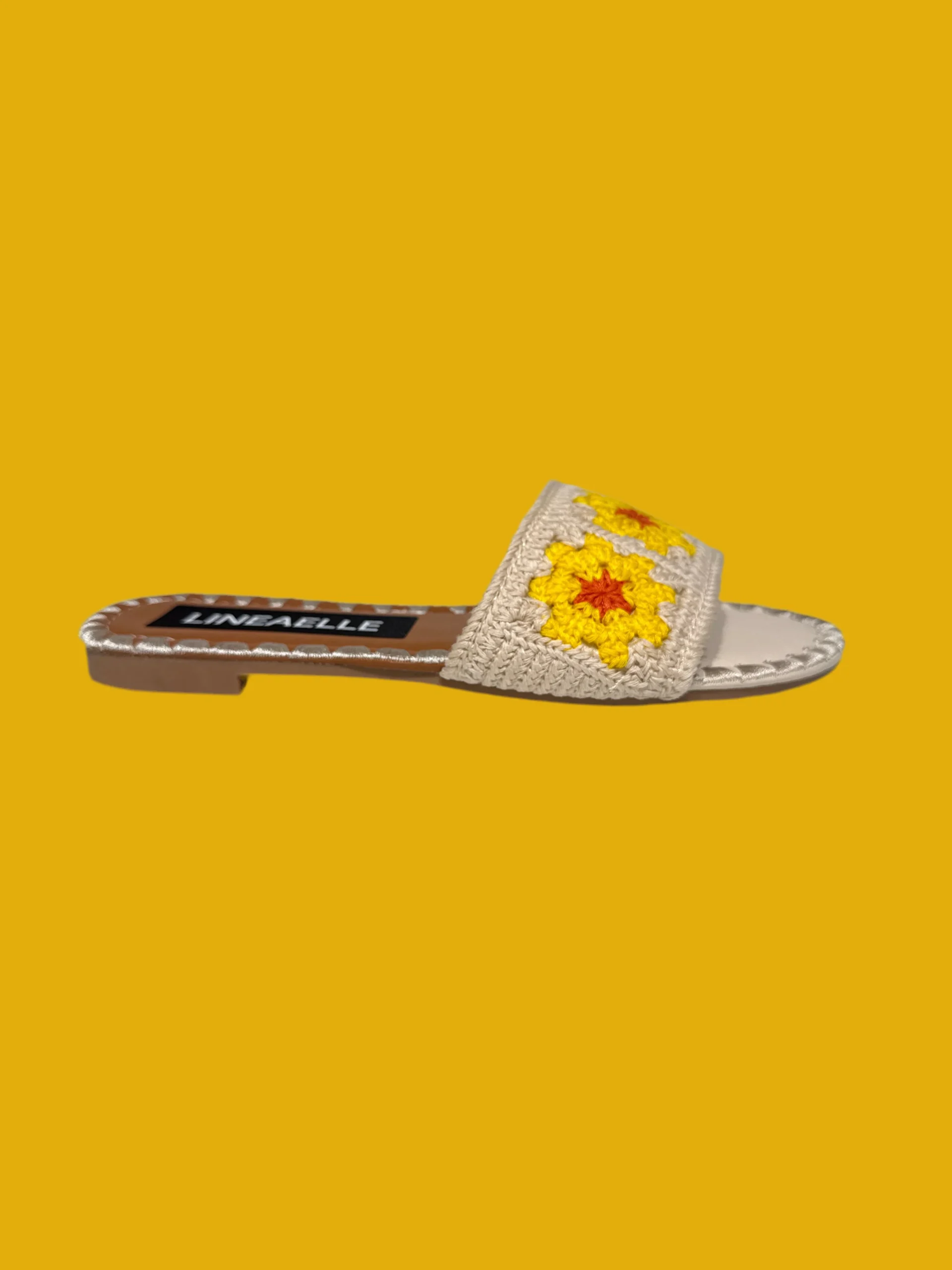Ciabattine da gran caldo , lavorazione crochet . Calzano regolarmente