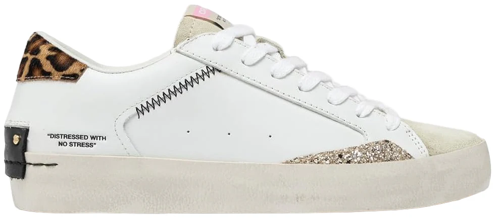Sneakers in pelle bianca e camoscio, top dietro leopardato ,inserto glitter oro Plantare interno con rialzo 3,5 cm calzata regolare