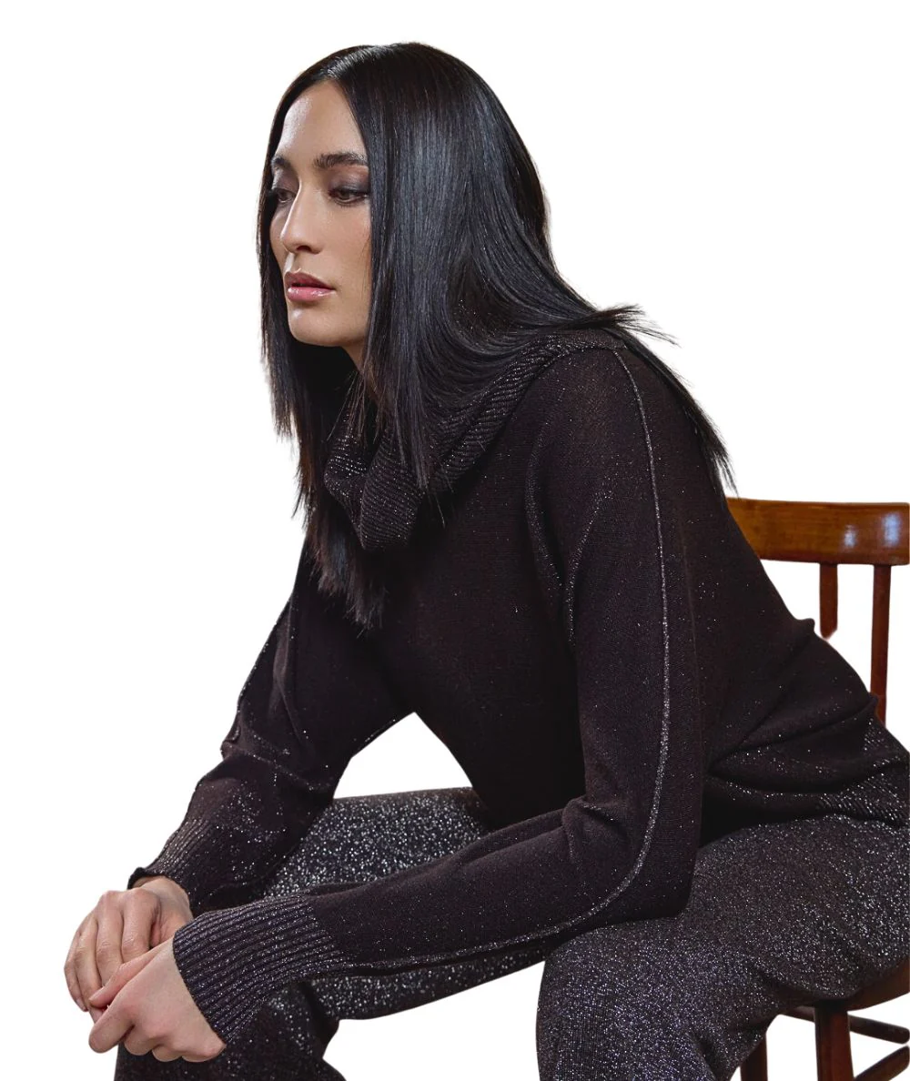 D.Exterior Maglia Lurex Reversibile con Collone 61426 Marrone