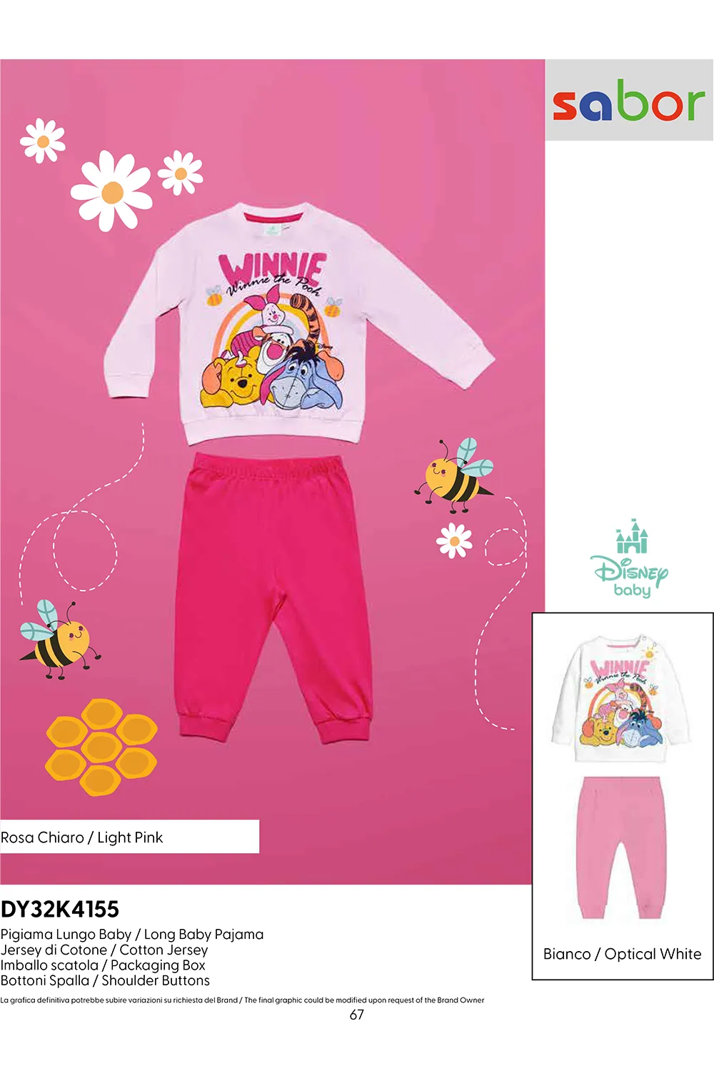 SABOR PIGIAMA BABY GIRL PERSONAGGI DISNEY IN 100% COTONE. TG: 12MESI / 18 MESI / 24MESI / 30MESI. COLORE: ROSA CHIARO – BIANCO . BAULETTO DA 16 PEZZI: 2PZ 12M/ROSA CHIARO; 2PZ 18M/ROSA CHIARO; 2PZ 24M/ROSA CHIARO; 2PZ 30M/ROSA CHIARO; 2PZ 12M/BIANCO ; 2PZ 18M/BIANCO ; 2PZ 24M/BIANCO ; 2PZ 30M/BIANCO ;