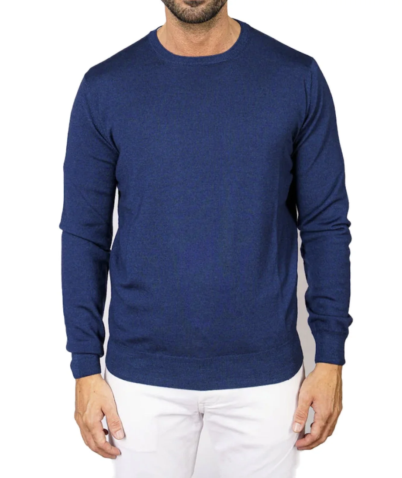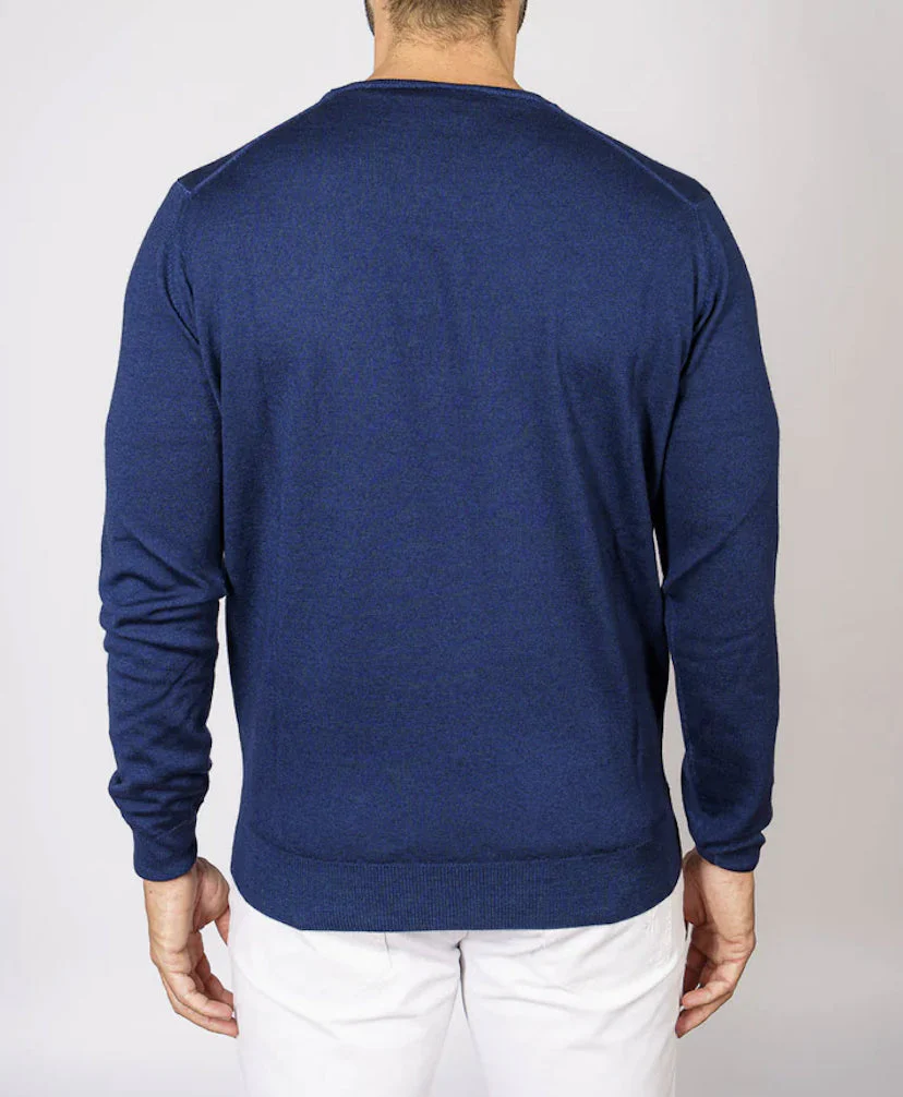 Maglia girocollo di FILIPPO DE LAURENTIIS in lana merino. Made in Italy. Codice: GC1ML/WM12RV Colore: INDACO