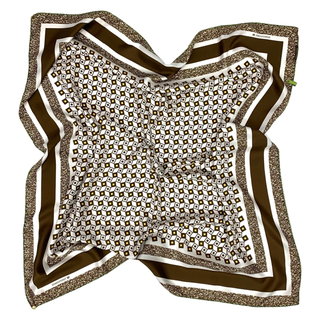 Foulard cm 90×90 Pura Seta disegno geometrico marrone Cod 539