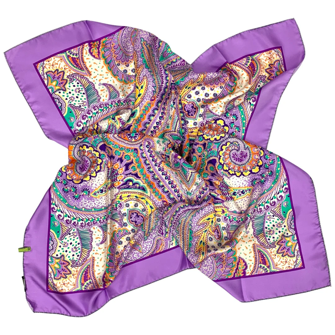 Foulard cm 90×90 Pura Seta disegno Paisley Hippy colore Lilla Cod 553