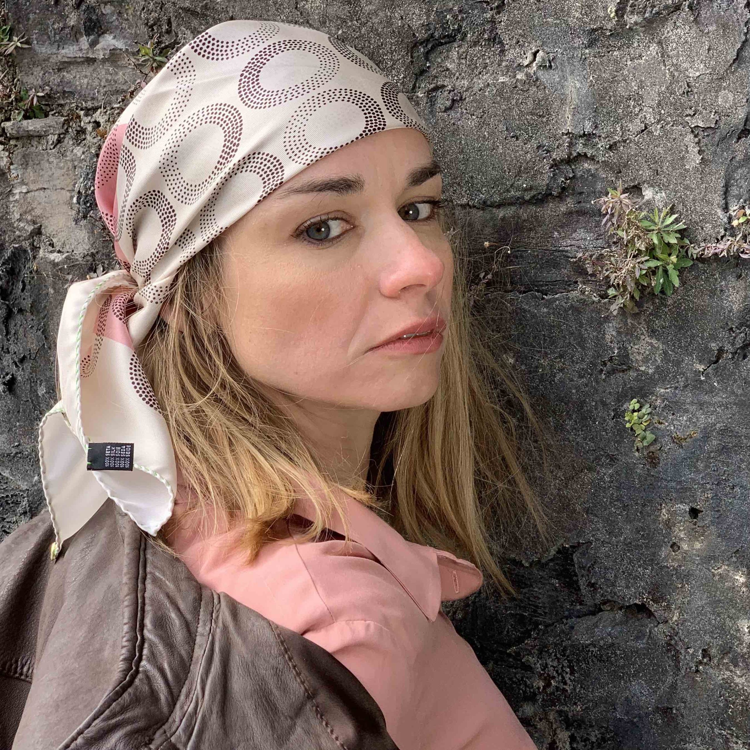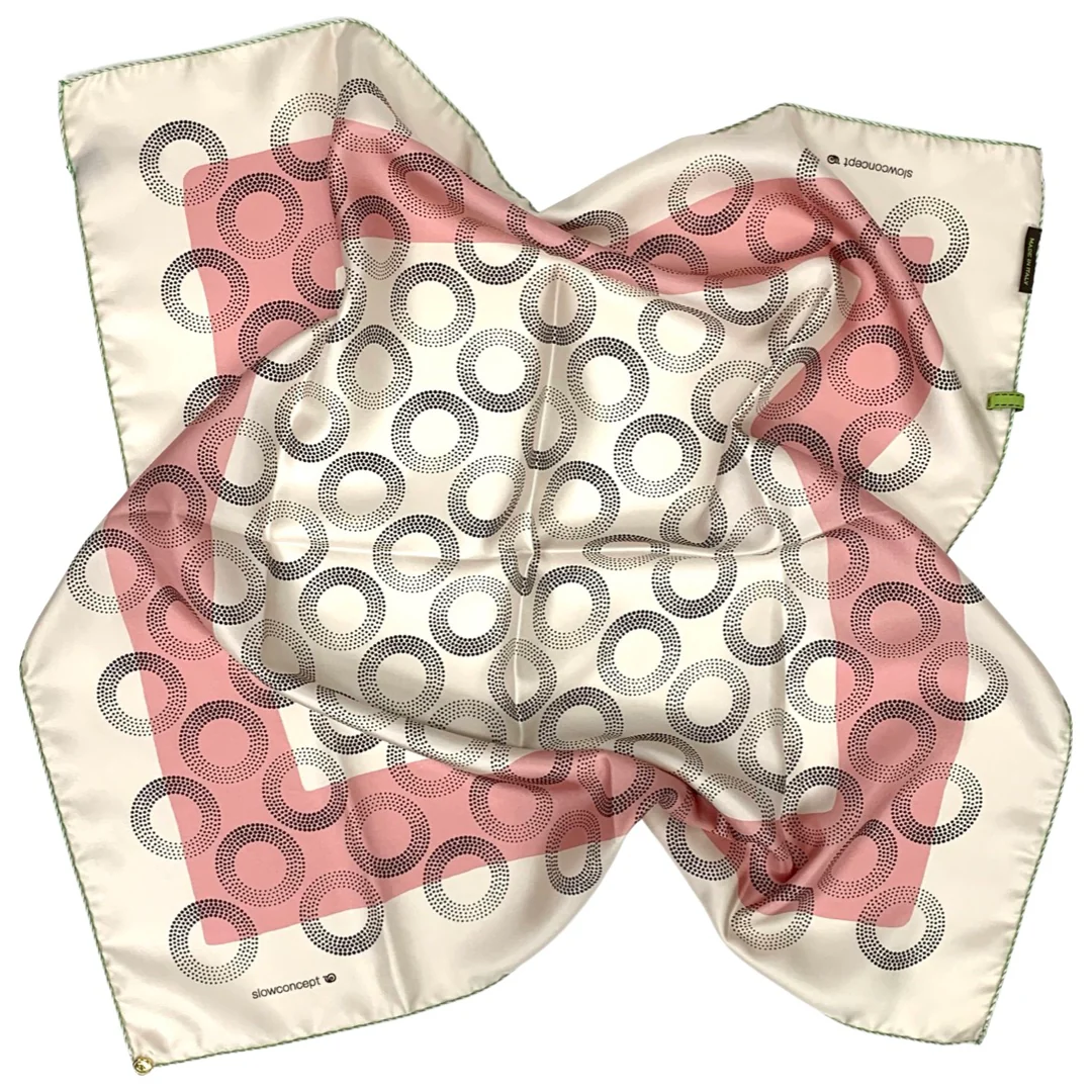 Foulard in Pura Seta cm 70×70 disegno bio anelli color rosa cipria Cod 565