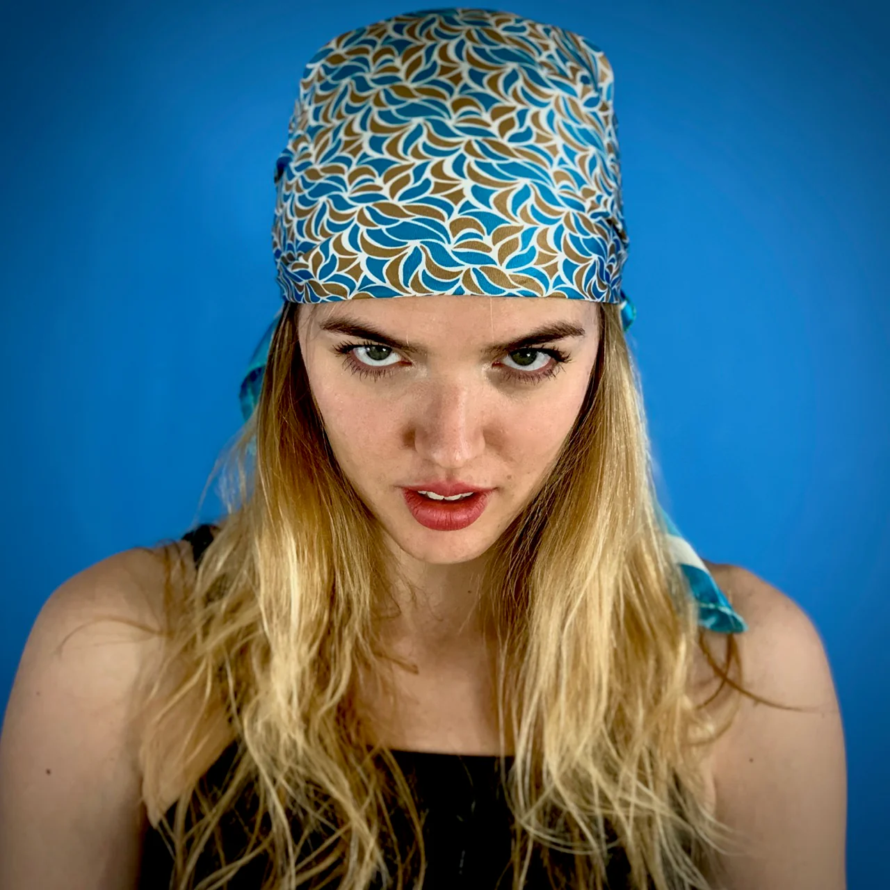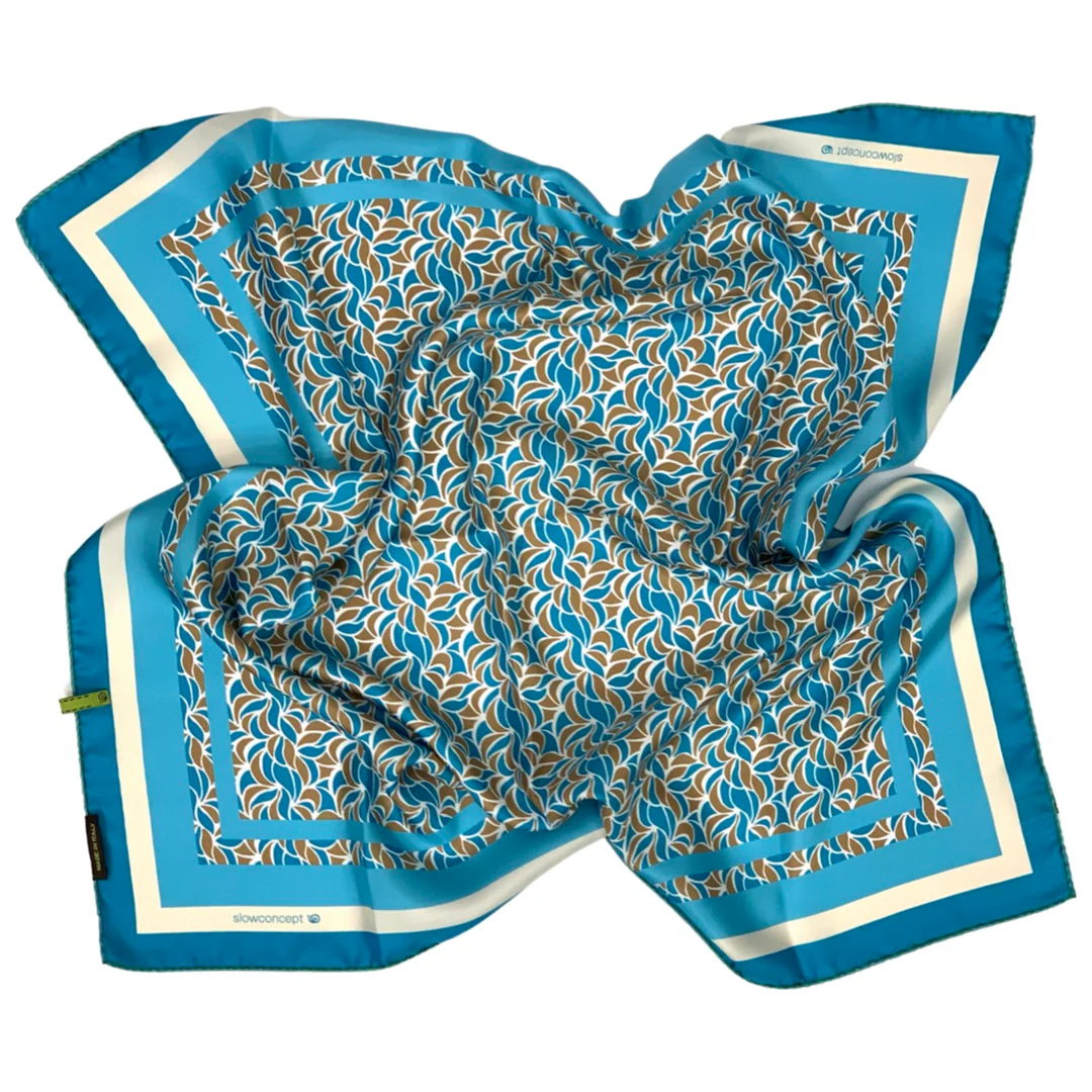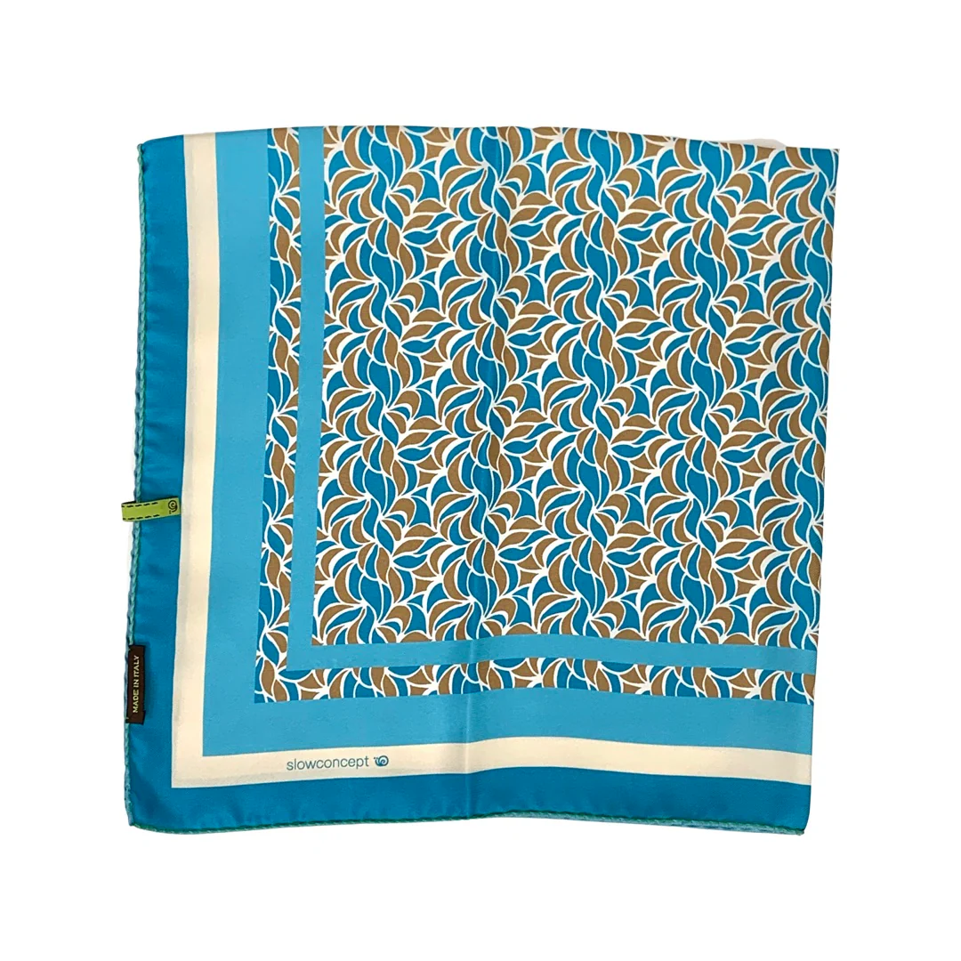 Foulard in Pura Seta cm 70×70 disegno foglie ’70 colore Blu. Cod 559