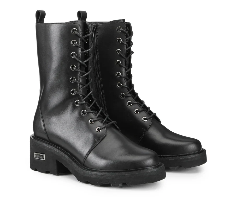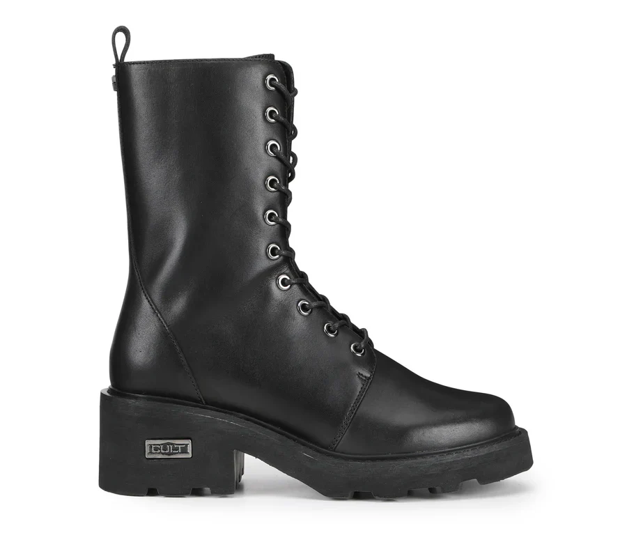 Comodi ma senza rinunciare all’anima rock gli anfibi stringati firmati da Cult per questo inverno. Un modello intramontabile di stivaletti in pelle con occhielli in metallo, targhetta con logo sulla suola di gomma e linguetta posteriore. Da indossare con jeans, pantaloni o gonne corte.