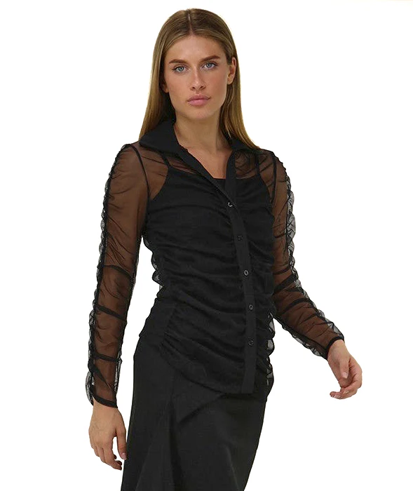 KAOS JEANS CAMICIA IN TULLE CON EFFETTO TRASPARENTE QIJMA003 NERO