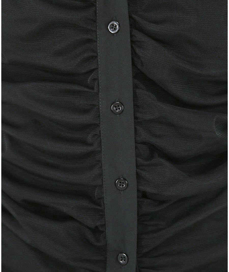 Camicia di KAOS JEANS realizzata in tulle, caratterizzata da effetto trasparente e top sottoveste. Made in Italy. Codice: QIJMA003 Colore: NERO