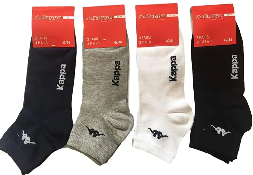 MINICALZA KAPPA. TG: 36/38 – 39/41 – 42/44 – 45/47. COLORE: BIANCO – BLU – NERO – GRIGIO. TRIPACK. Prezzo tripack