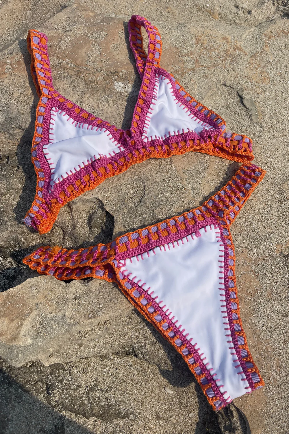 Scegli il nostro esclusivo bikini uncinetto double face, disponibile in un’elegante fantasia etnica da un lato ed un sofisticato colore tinta dall’altro. Il bikini uncinetto di FédebyFéde si adatta perfettamente a qualsiasi forma del corpo, grazie agli elastici colorati che abbracciano il costume in ogni punto.