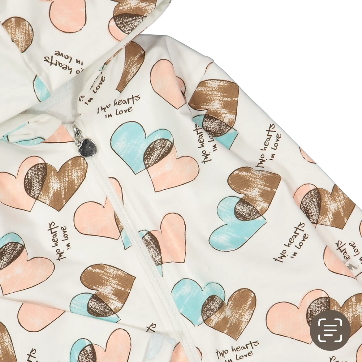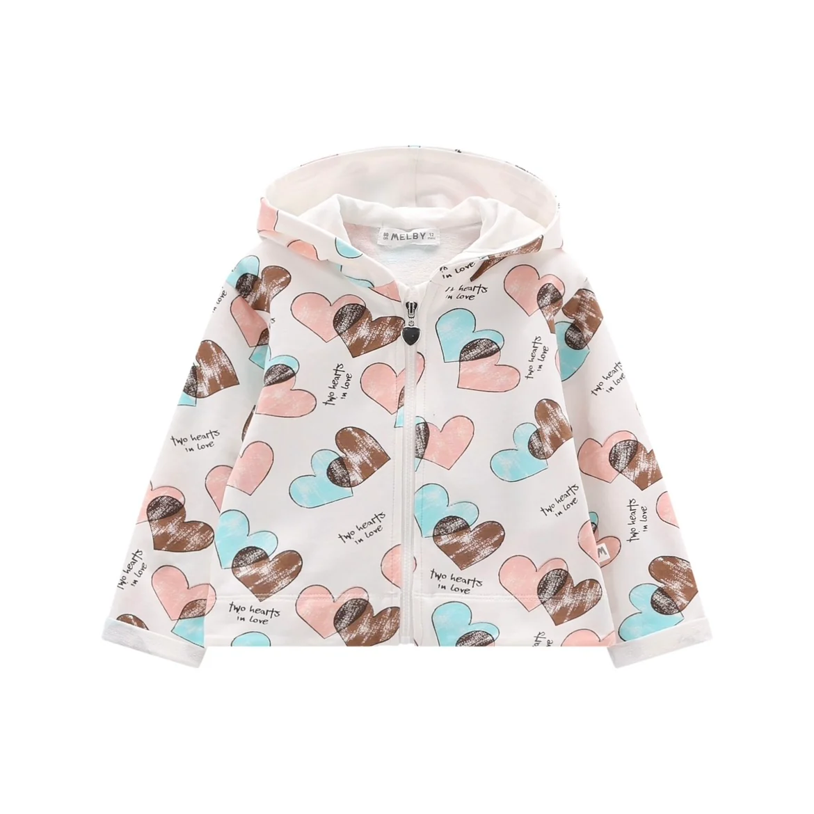 ART. 46D5003B – 452L / 46D5003K – 452L Felpa full-zip con cappucci, realizzata in felpa stretch con stampa allover a maxi cuori nei toni pastello; tiretto della cerniera a cuore. Perfetta per il tempo libero! COMPOSIZIONE:95% Cotone 5% Elastan
