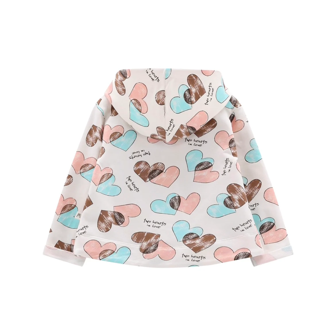 Felpa full-zip con cappucci, realizzata in felpa stretch con stampa allover a maxi cuori nei toni pastello; tiretto della cerniera a cuore. Perfetta per il tempo libero!
