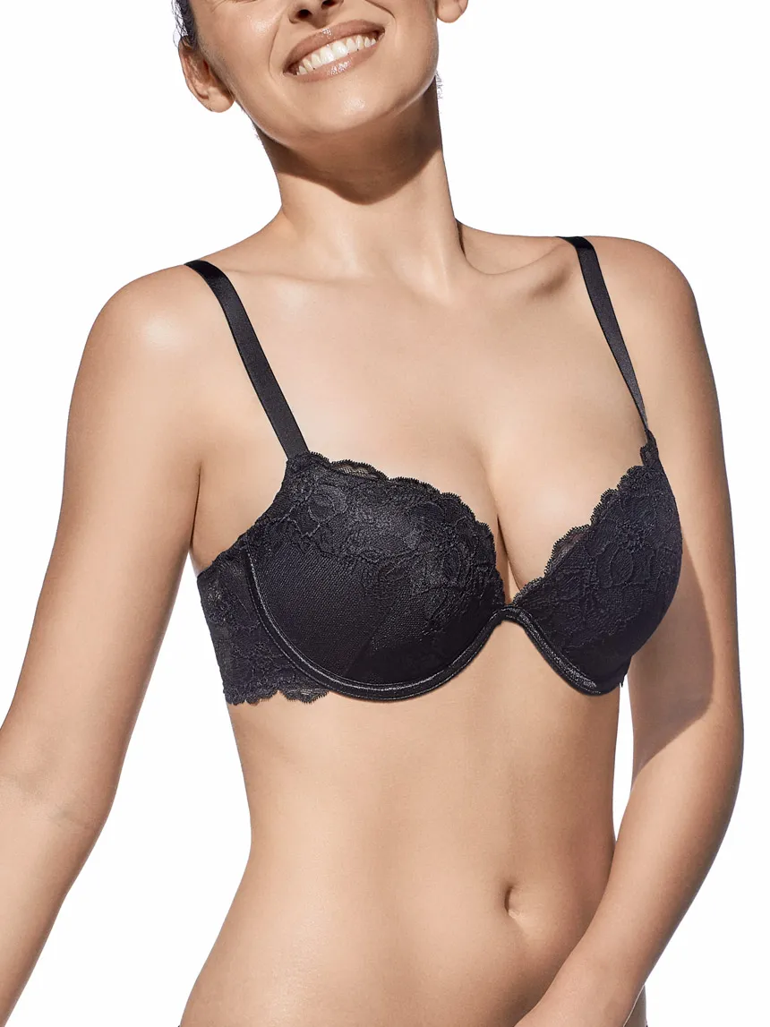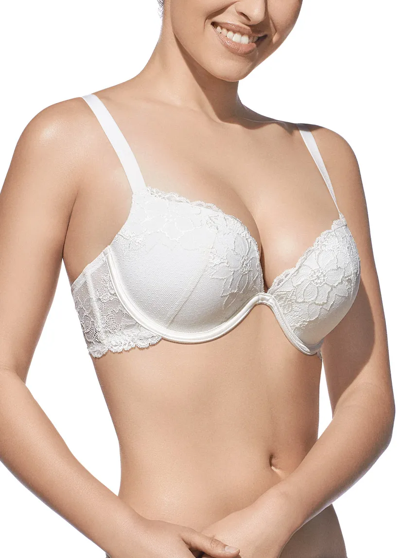 REGGISENO IMBOTTITO PUSH-UP CON ELEGANTI INSERTI IN PIZZO E UNA SCOLLATURA SEDUCENTE SELENE. TG: 2C – 3C – 4C – 5C. COLORE: MARFIL – NERO – TIERRA.
