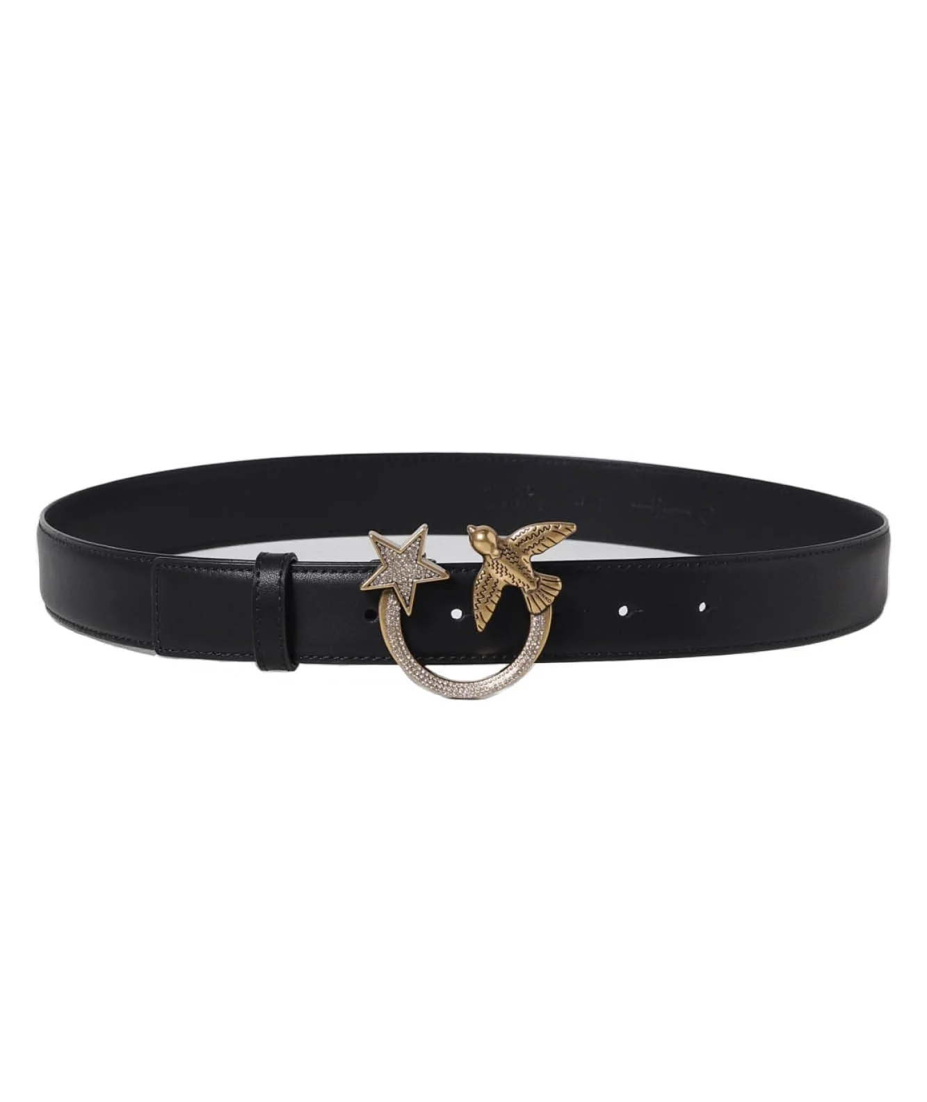 Cintura di PINKO in pelle morbida mano seta con fibbia Love Birds e stella con strass in metallo. Altezza: 3 cm Codice: 100125/A111 Colore: NERO