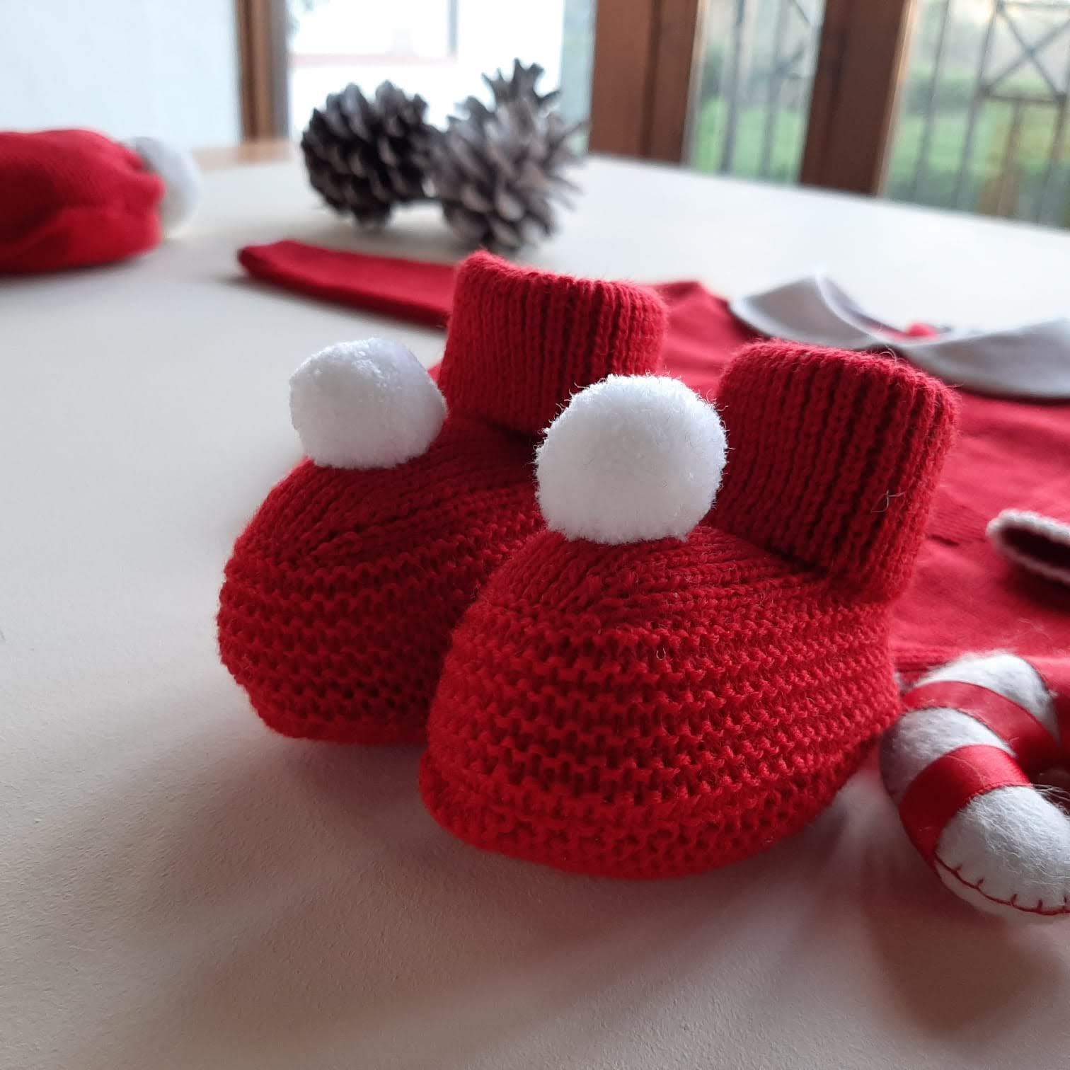 Dolci e morbide scarpette natalizie color rosso decorate da un tenero pom pom in lana latte. Perfette per il suo primo Natale! 🎅 Caratteristiche 100% lana merino extra-fine Pom pom realizzati a mano Lavaggio a mano a basse temperature. Consulta la sezione Cura dei capi ❤️ Made in Italy