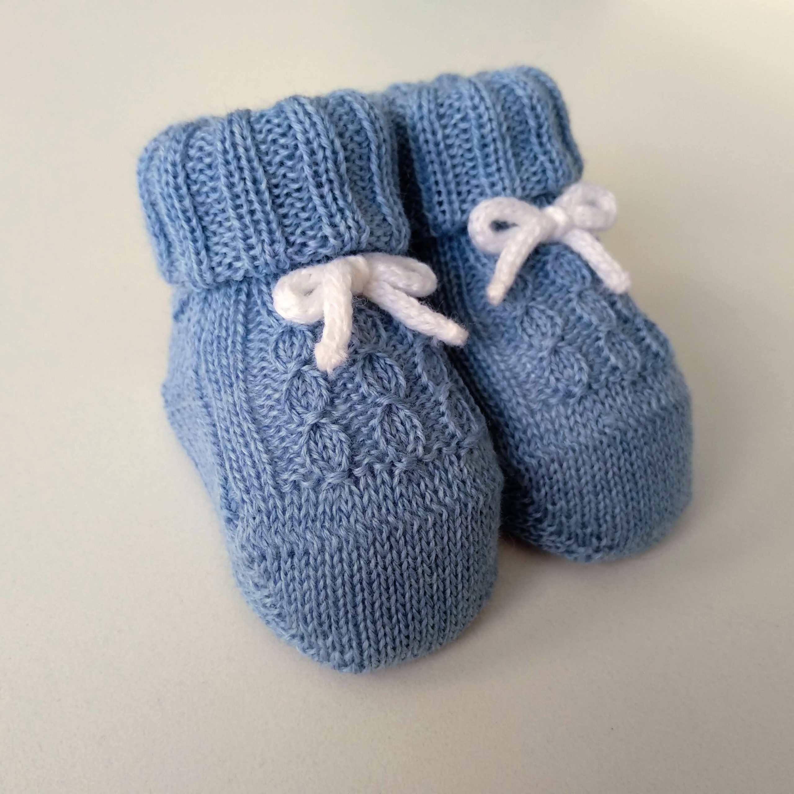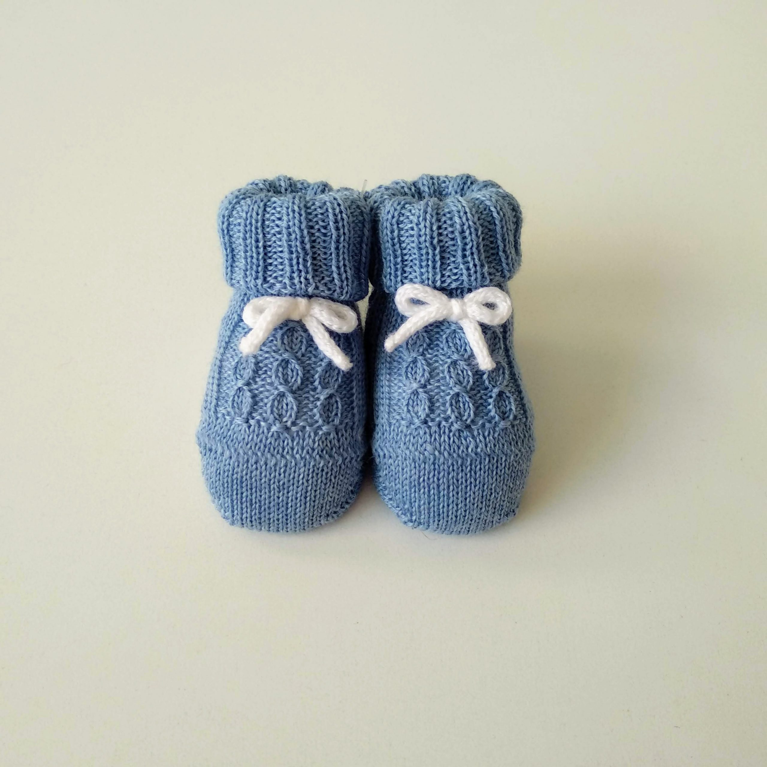 Scarpette tinta unita color denim in 100% lana merino con piccoli cerchietti ricamati a mano tono su tono e due candidi fiocchetti latte. Calde, classiche e semplici da abbinare! 100% lana merino extra-fine Lavaggio a mano a basse temperature. Consulta la sezione Cura dei capi ❤️ Made in Italy