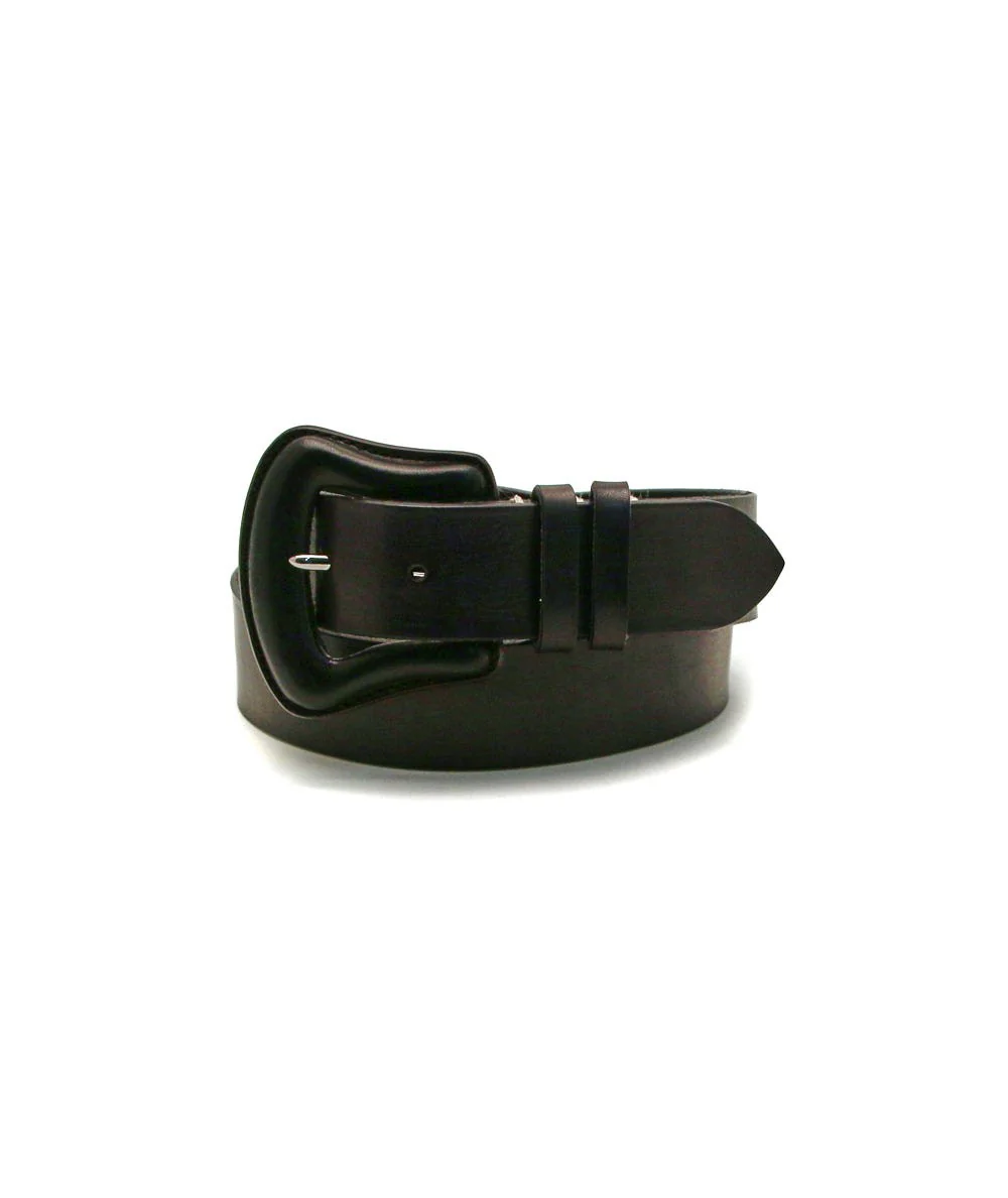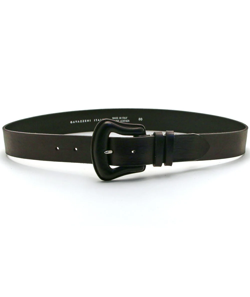 Cintura di Sergio Gavazzeni in vera pelle liscia di vitello con fibbia galvanizzata color nickel lucido riciperta in color nero. Modello CA01032367 color nero. MADE IN ITALY