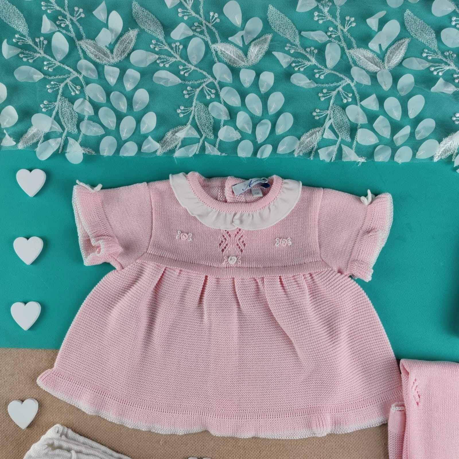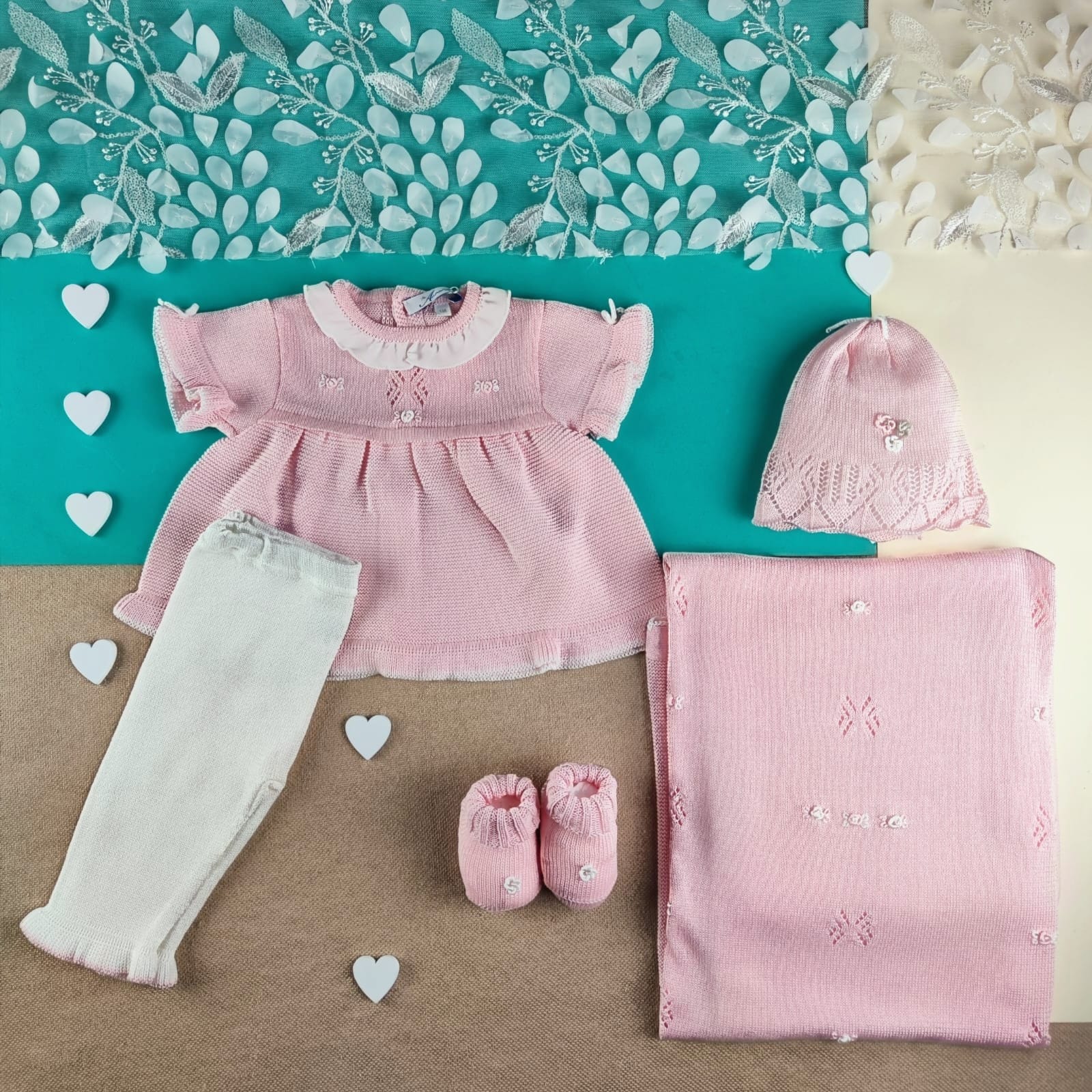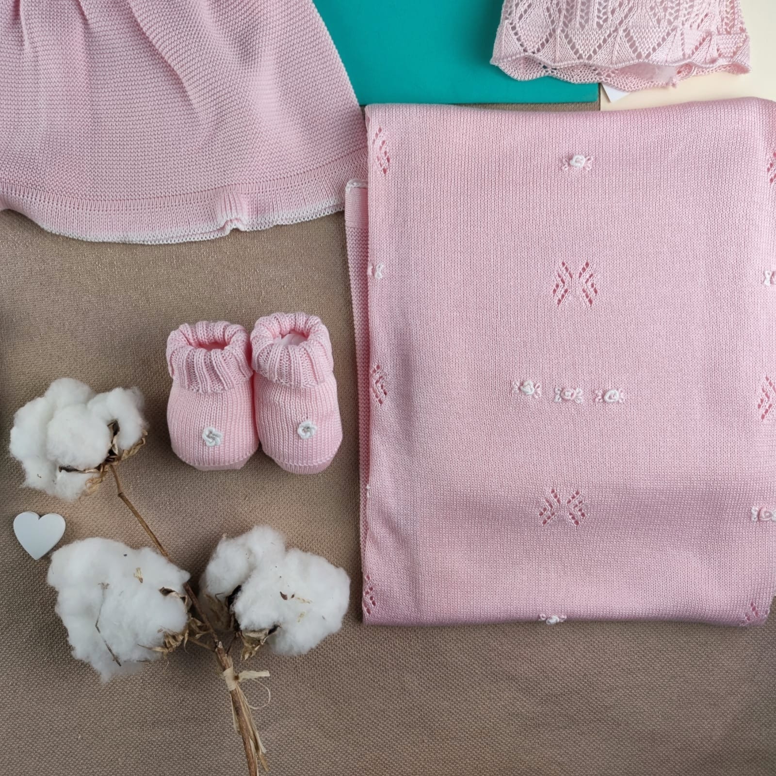 Set nascita per lei, in filo di scozia morbidissimo, composto da 4 elementi: Copertina rosa antico con fiorellini rococò ricamati a mano, nel latte rosa, con uncinetto lungo i bordi – completino a manica corta disponibile con culotte e/o pantalone lungo, con design di fiorellini ricamati come la copertina – cappellino nel rosa antico – scarpine nel rosa antico con fiorellini. N.B: Scrivici nelle note dell’ordine se preferisci la culotte con fiocchetti o il pantalone lungo🌸 La scelta ideale per tutte le nascite primavera/estate, celebrando la bellezza e la cura 🌸 100% cotone filo di scozia Ricamato a mano Lavaggio…