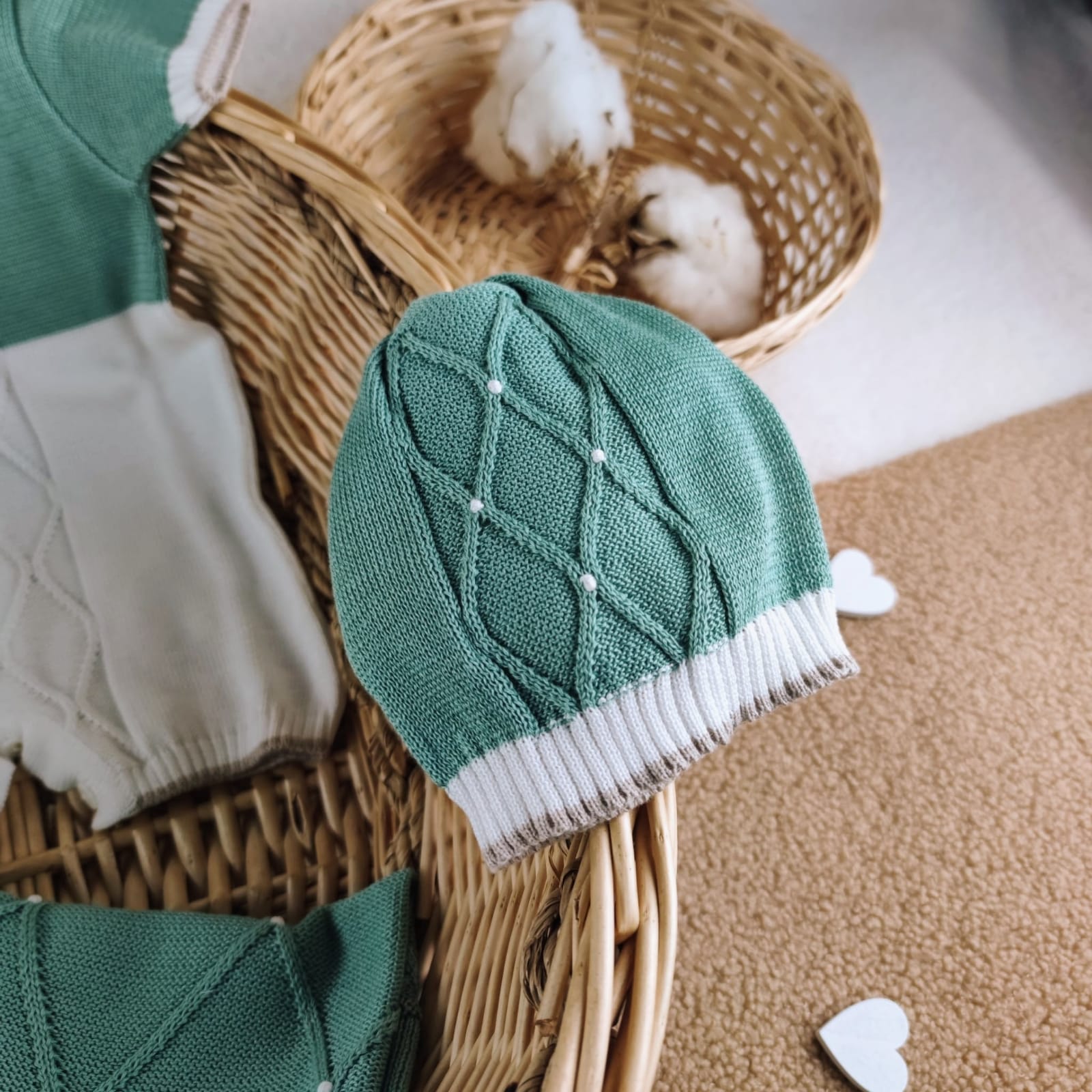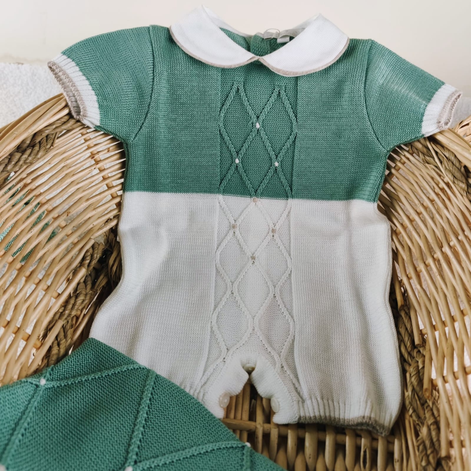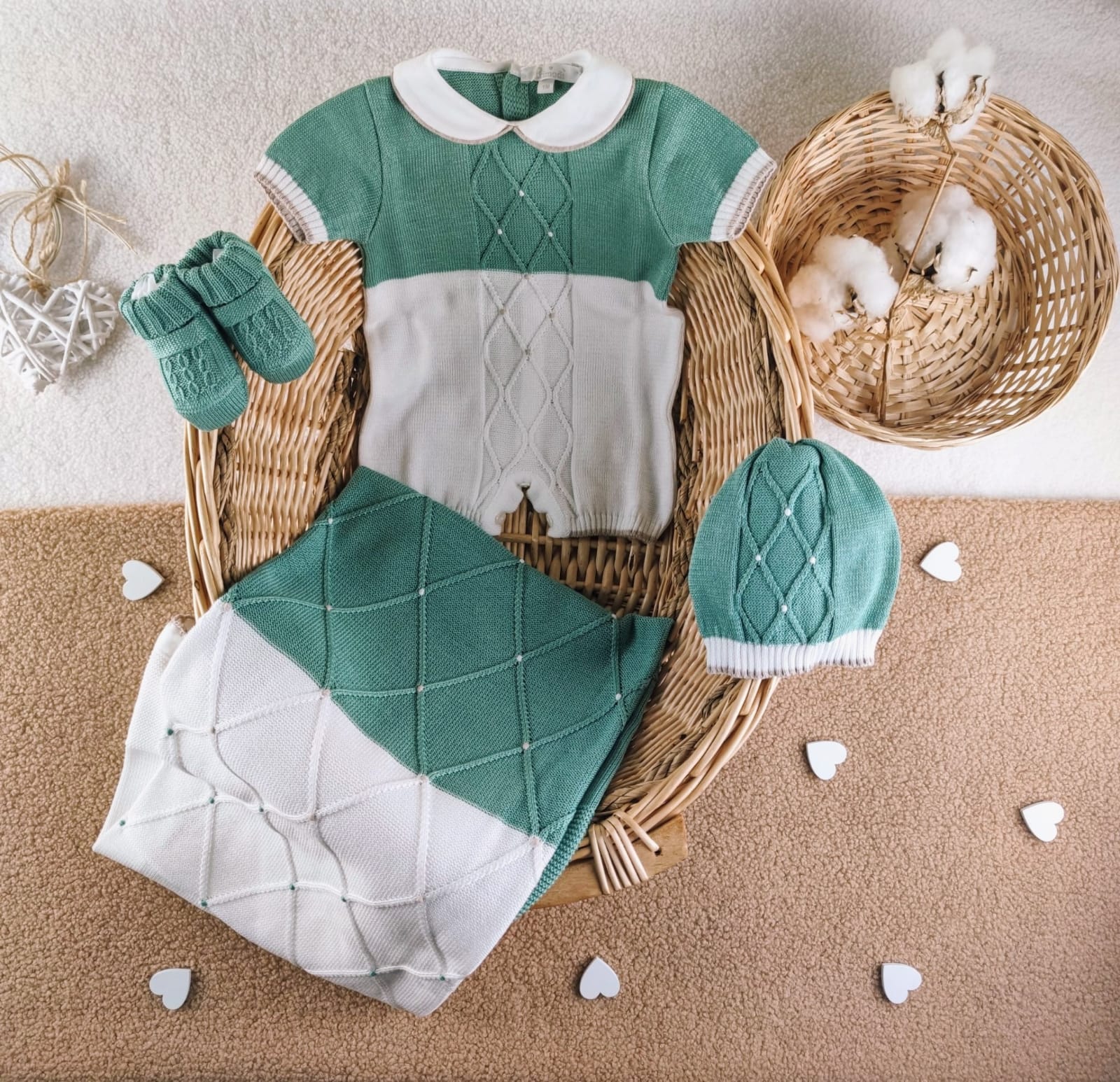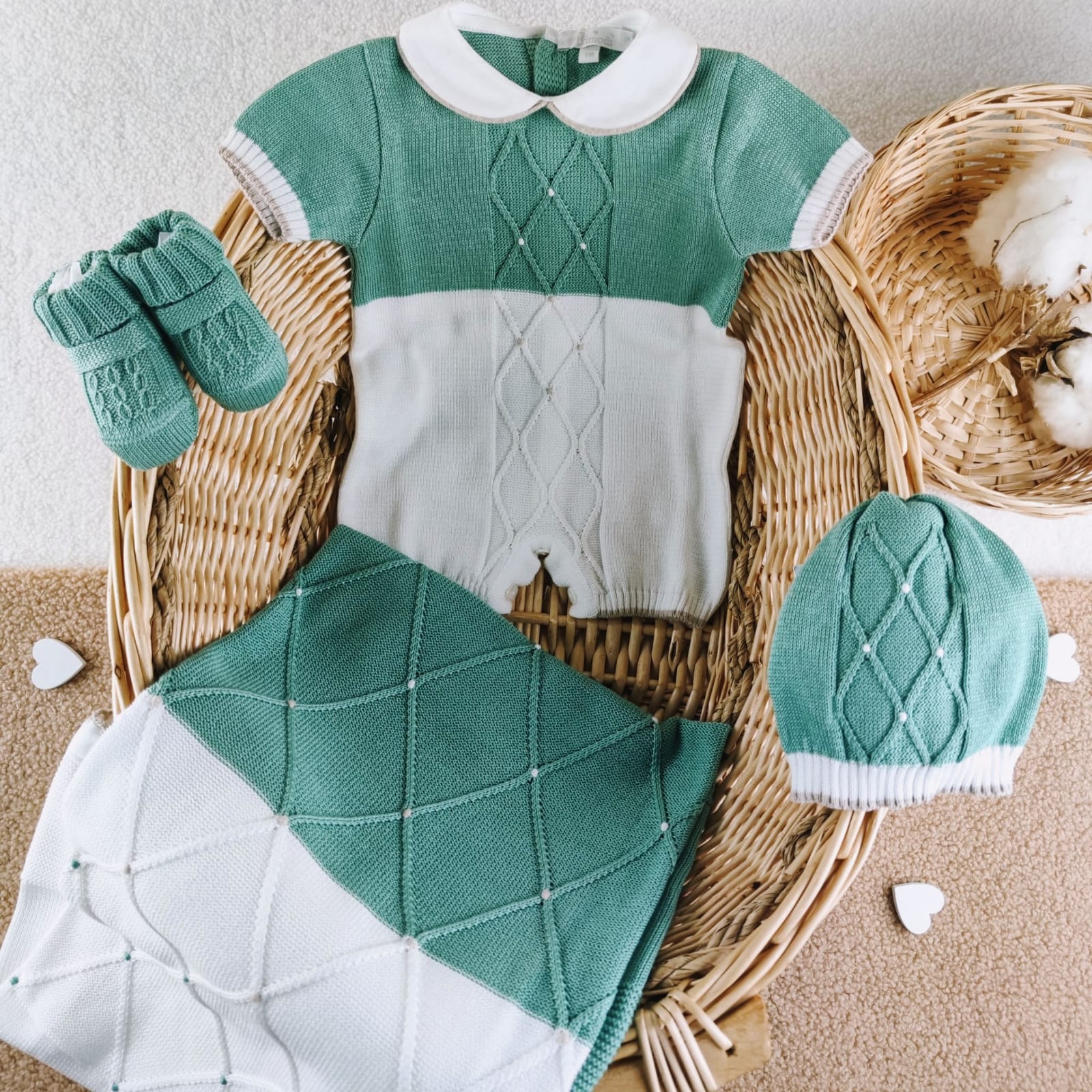 Set nascita cotone rombi verde