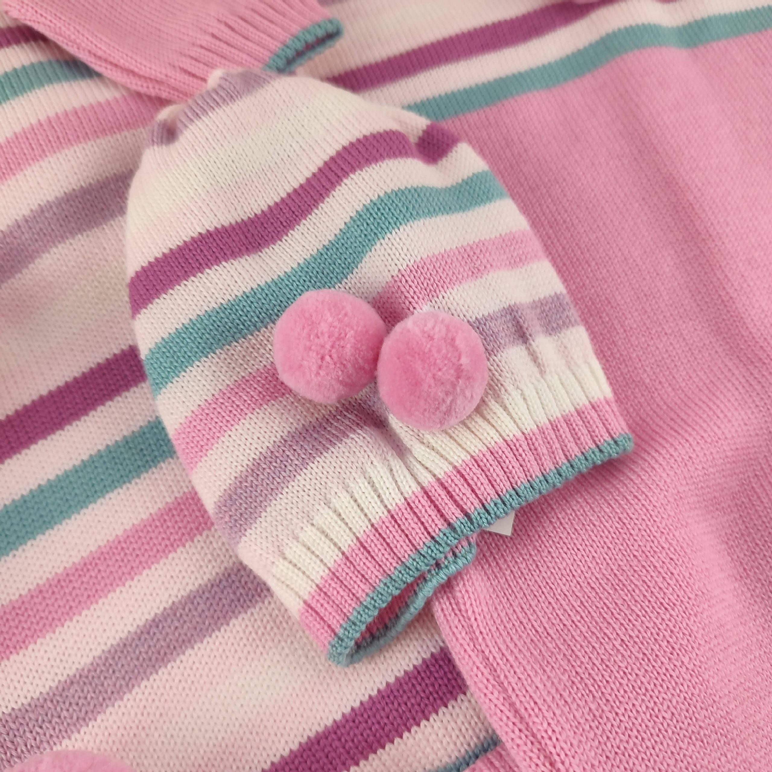 Set nascita per neonata a tema righe e pom pom, in 100% pura lana merino, dalla nostra linea Arcobaleno. Particolarissimo e coloratissimo! Comprende: 1 copertina con scritta Mon Amour tono su tono e pom pom, 1 tutina, 1 cappellino, 1 paio di scarpette. Pensa alla particolarità e unicità una volta indossato!🌈 100% lana merino Ricamato a mano Lavaggio a mano a basse temperature Made in Italy