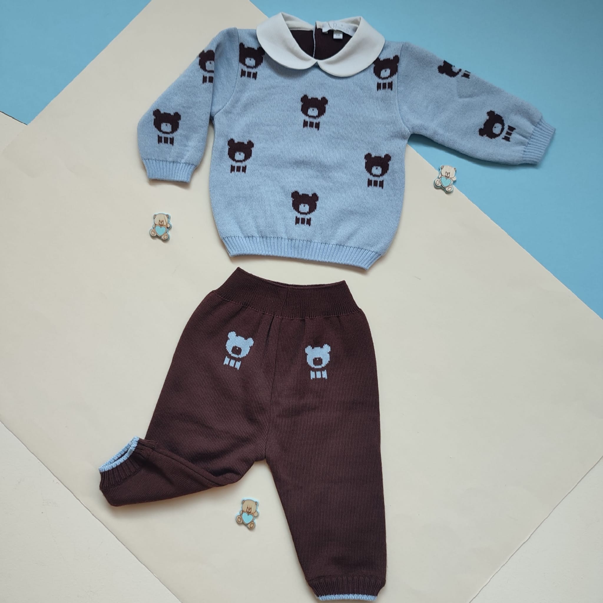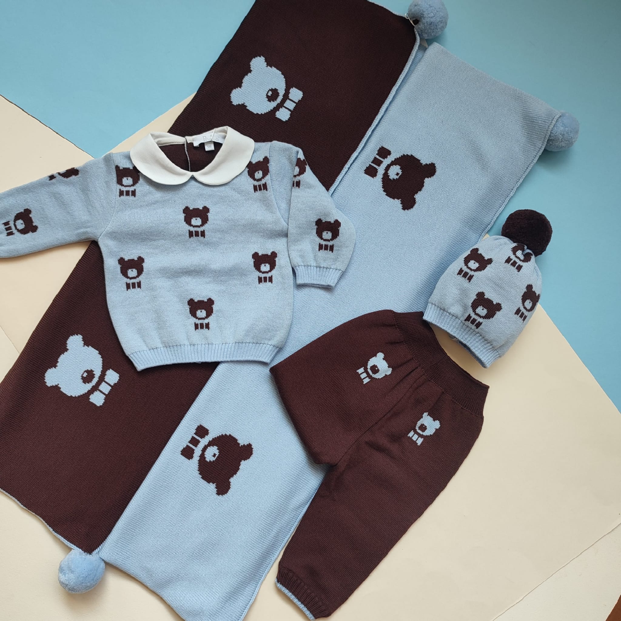 Set nascita lana orsetto doubleface cioccolato cielo🐻❄️