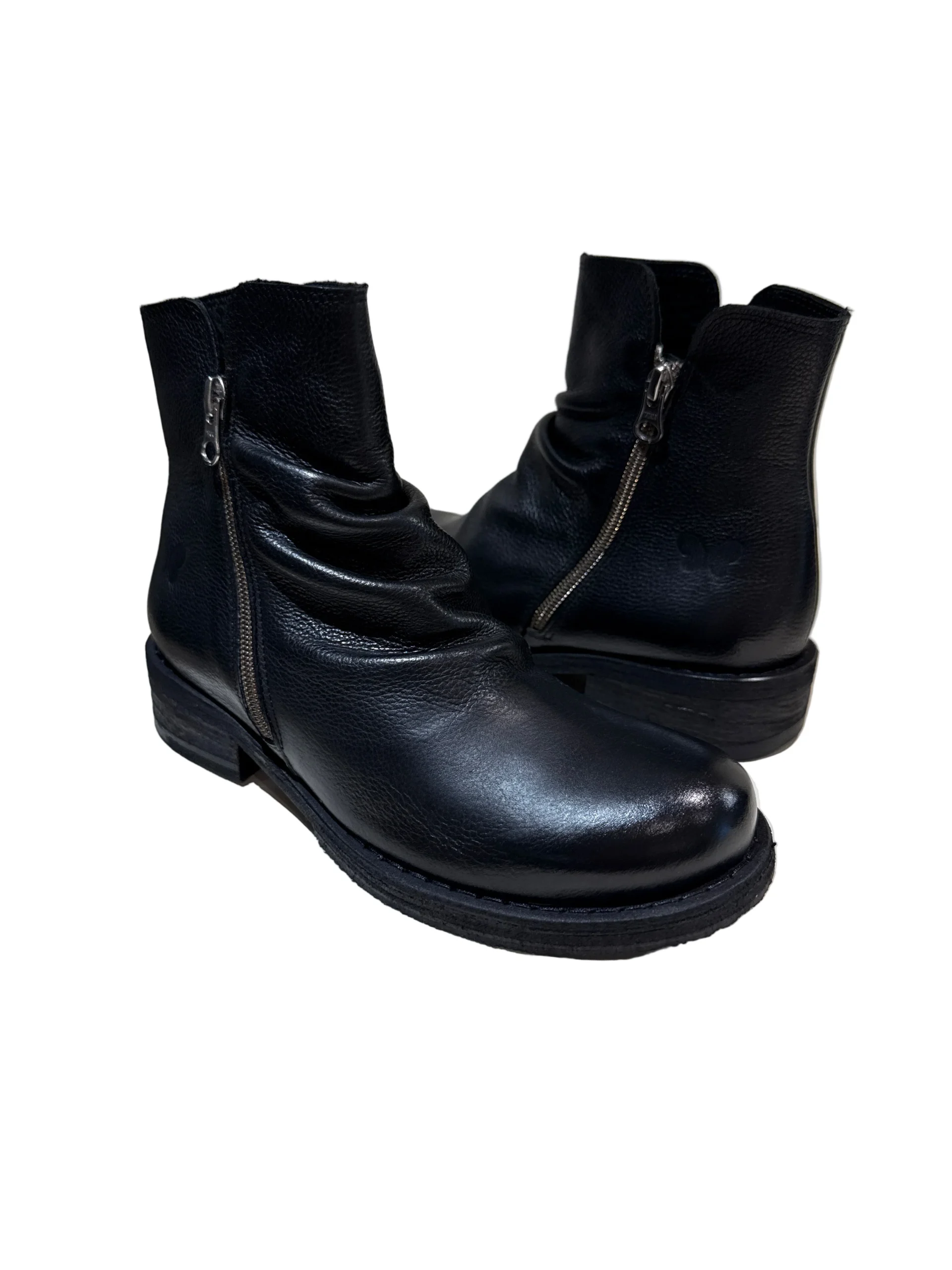 Stivaletto basso con zip laterale arricciatura sul collo, rende il prodotto confortevole Il tacco è basso, la calzata regolare. La qualità del prodotto è alta. Opzione pagamento rateale