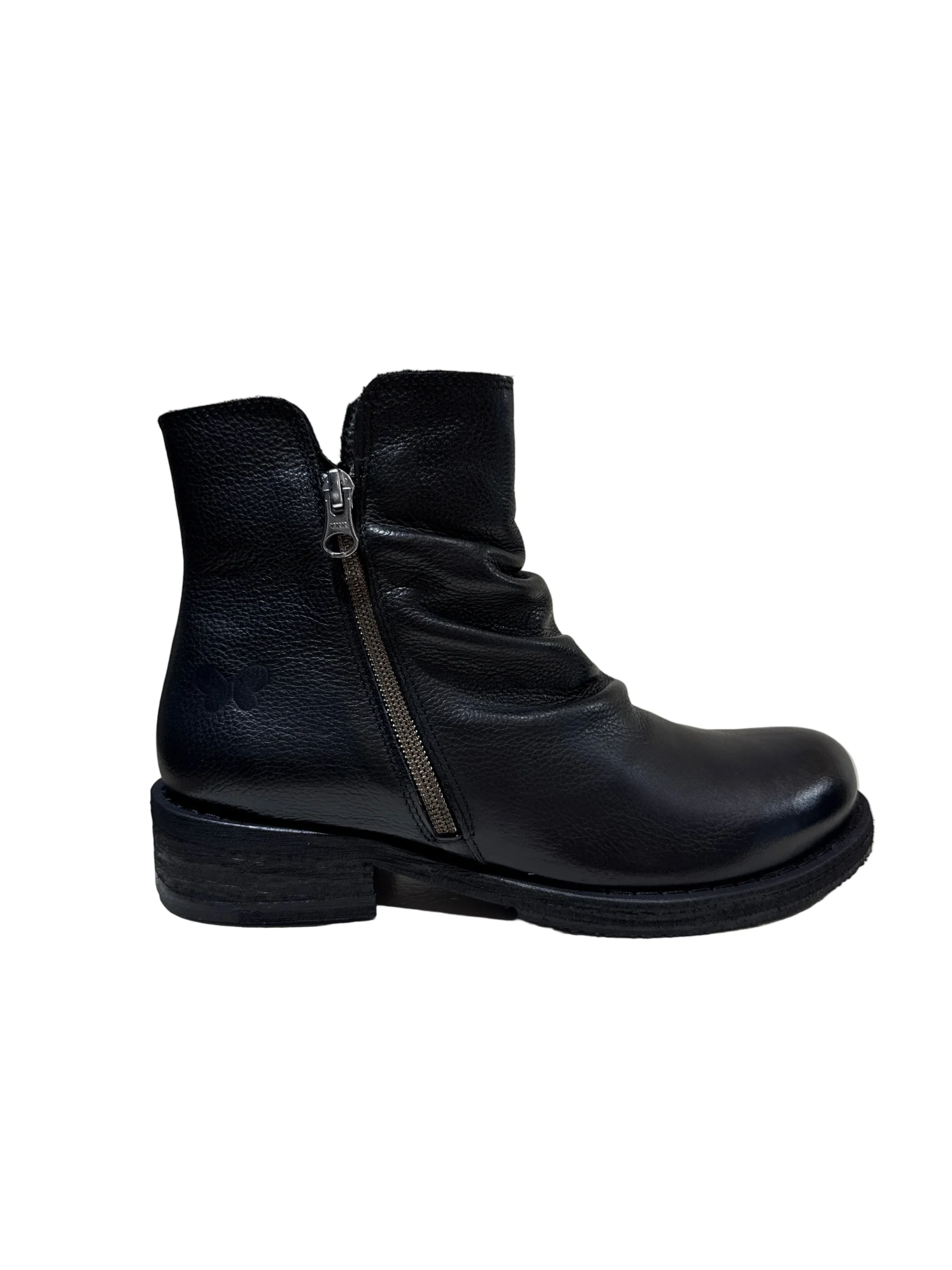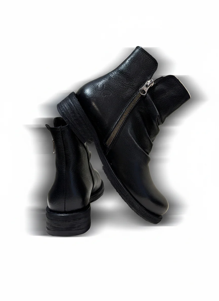 Stivaletto basso con zip laterale arricciatura sul collo, rende il prodotto confortevole
