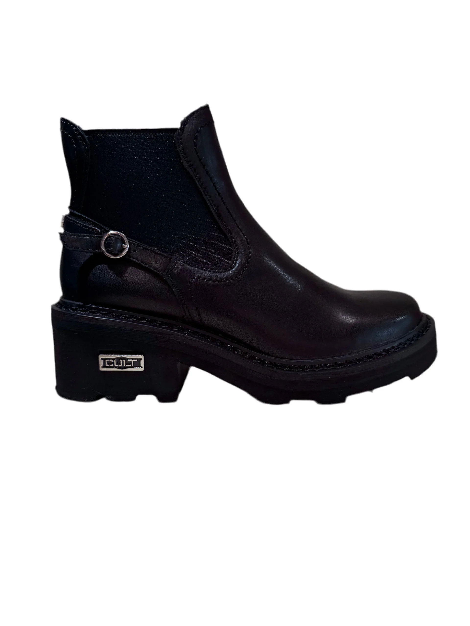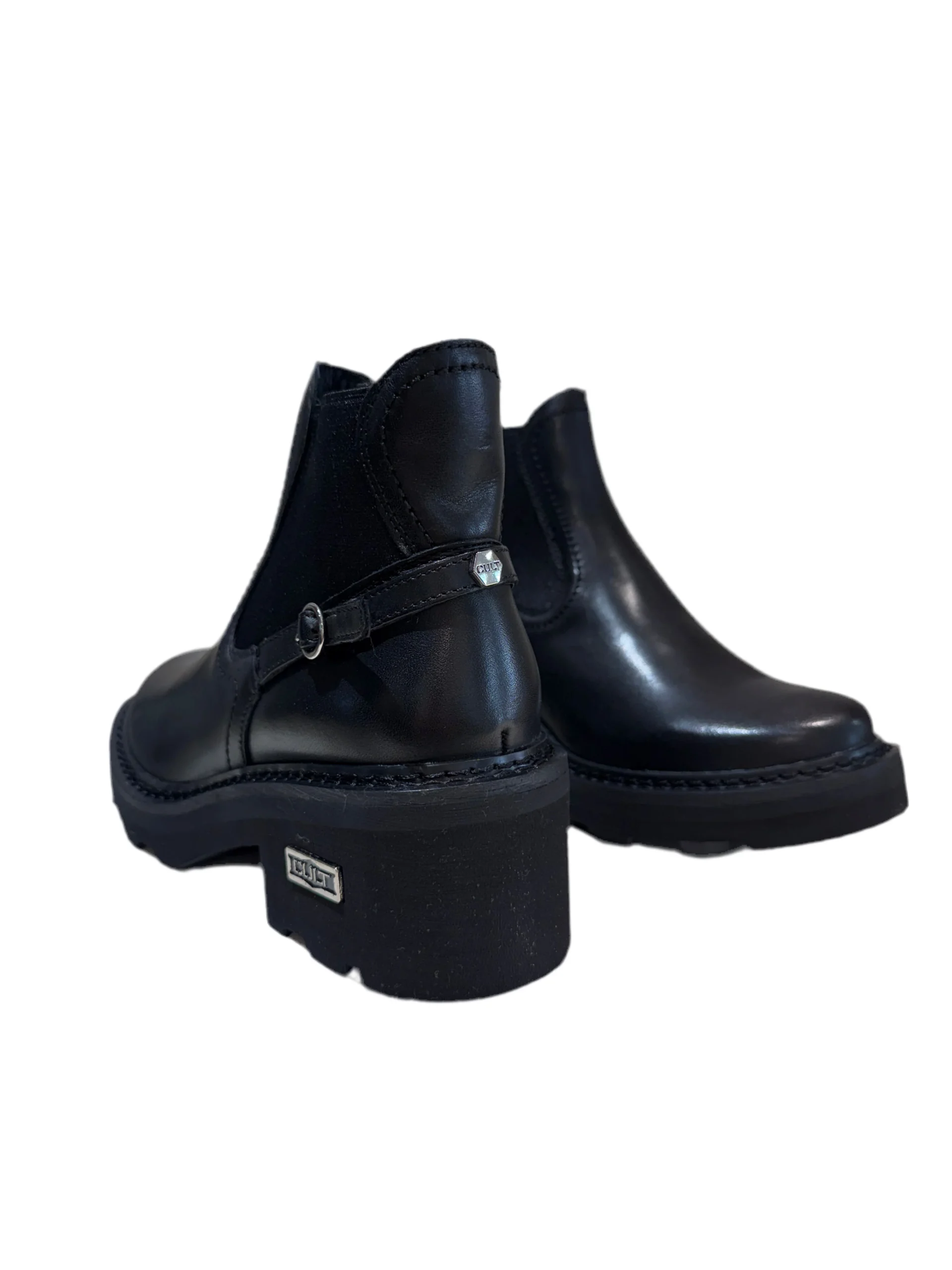 Tronchetto in pelle nero con elatici. Stile rock casual. Molto comodo per uso giornaliero. Calza regolare