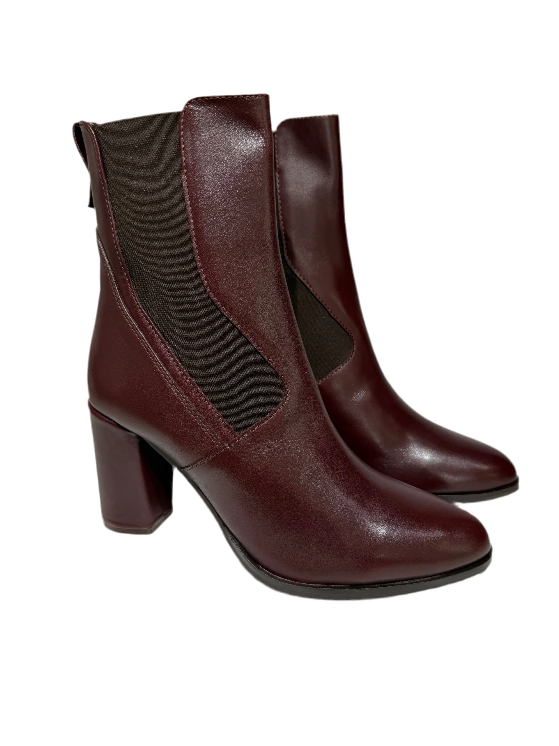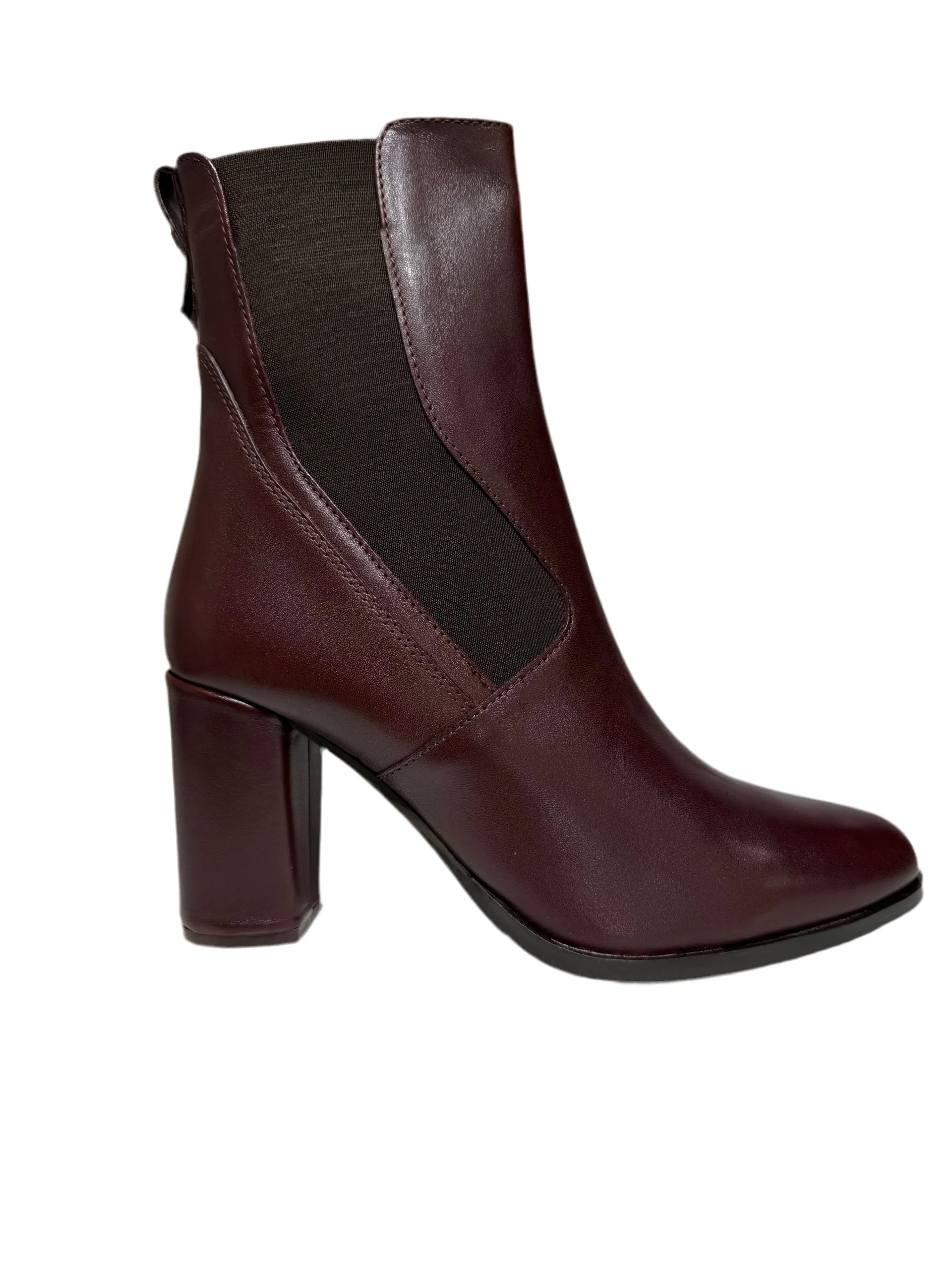 Stivaletto con elastico tacco cm 7, completamente in pelle.
