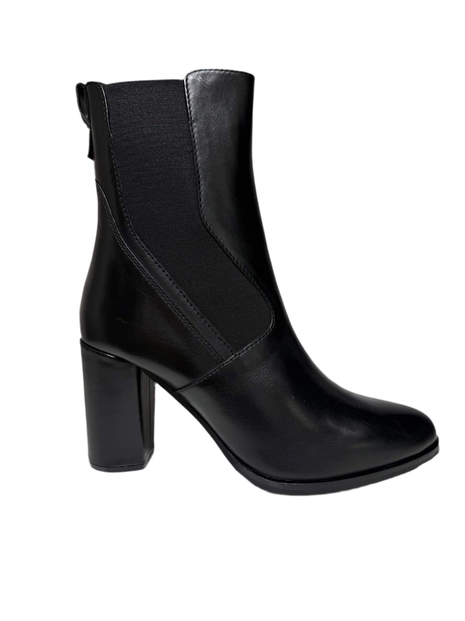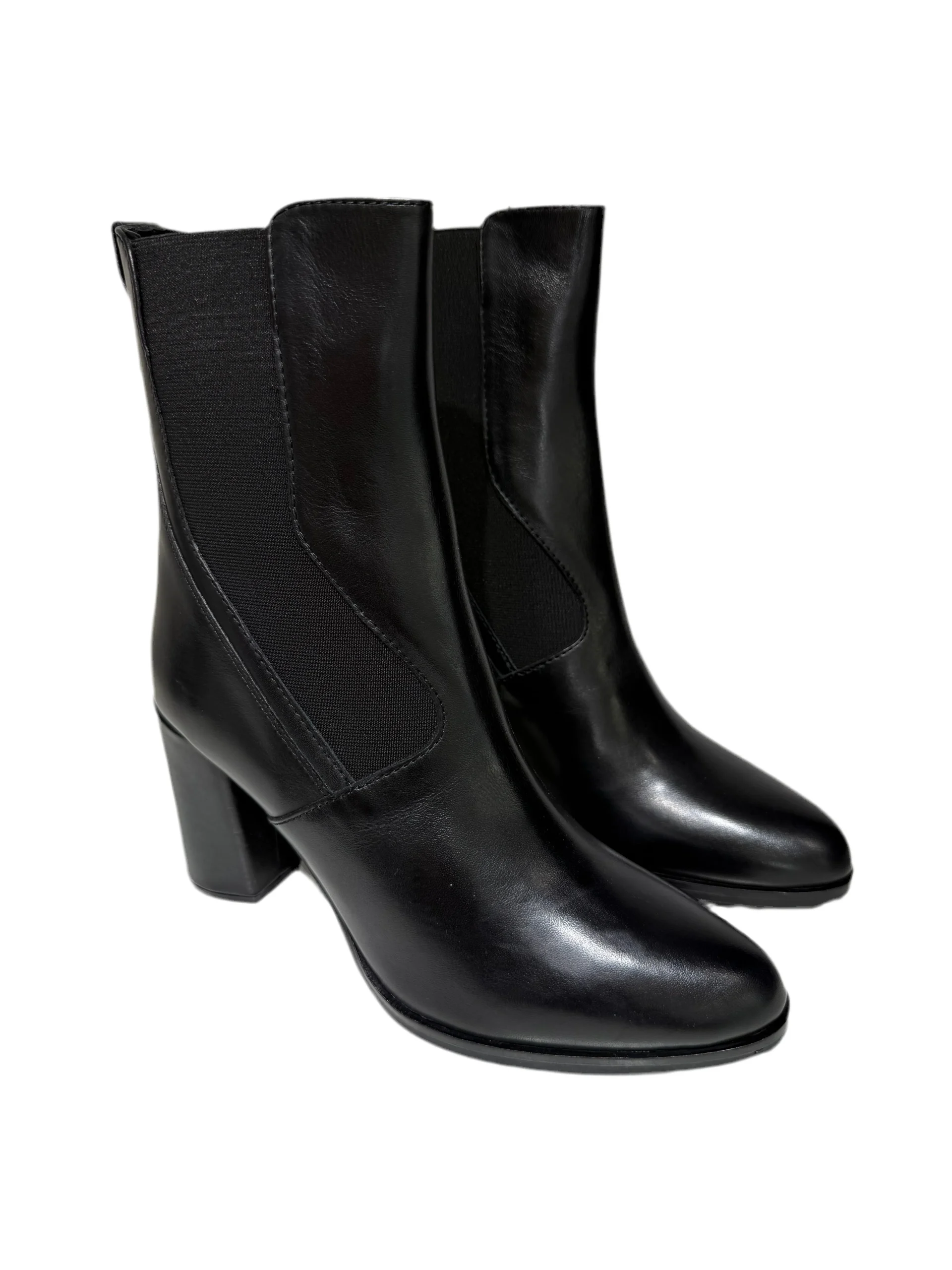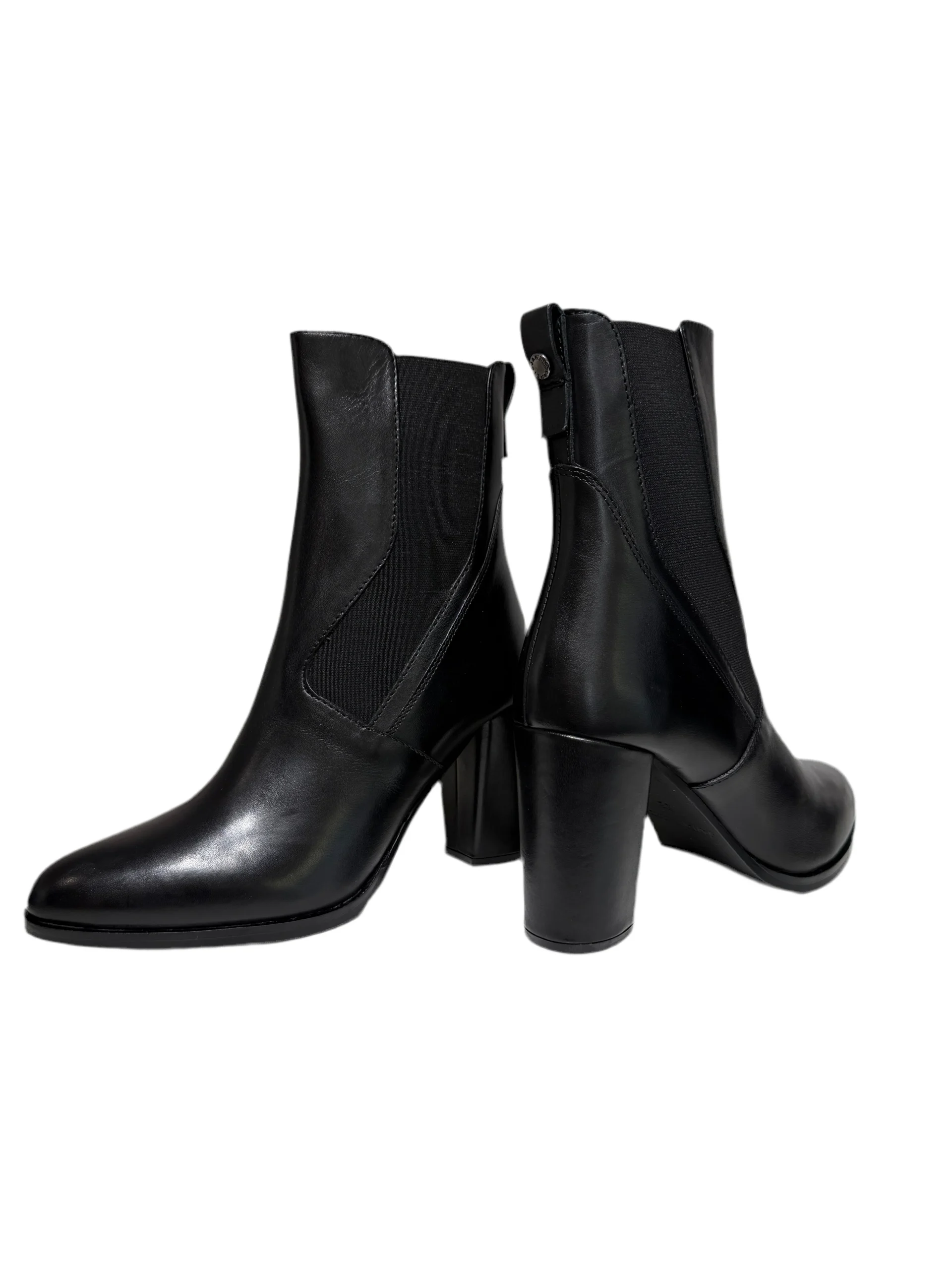 Stivaletto con elastico tacco cm 7, completamente in pelle.
