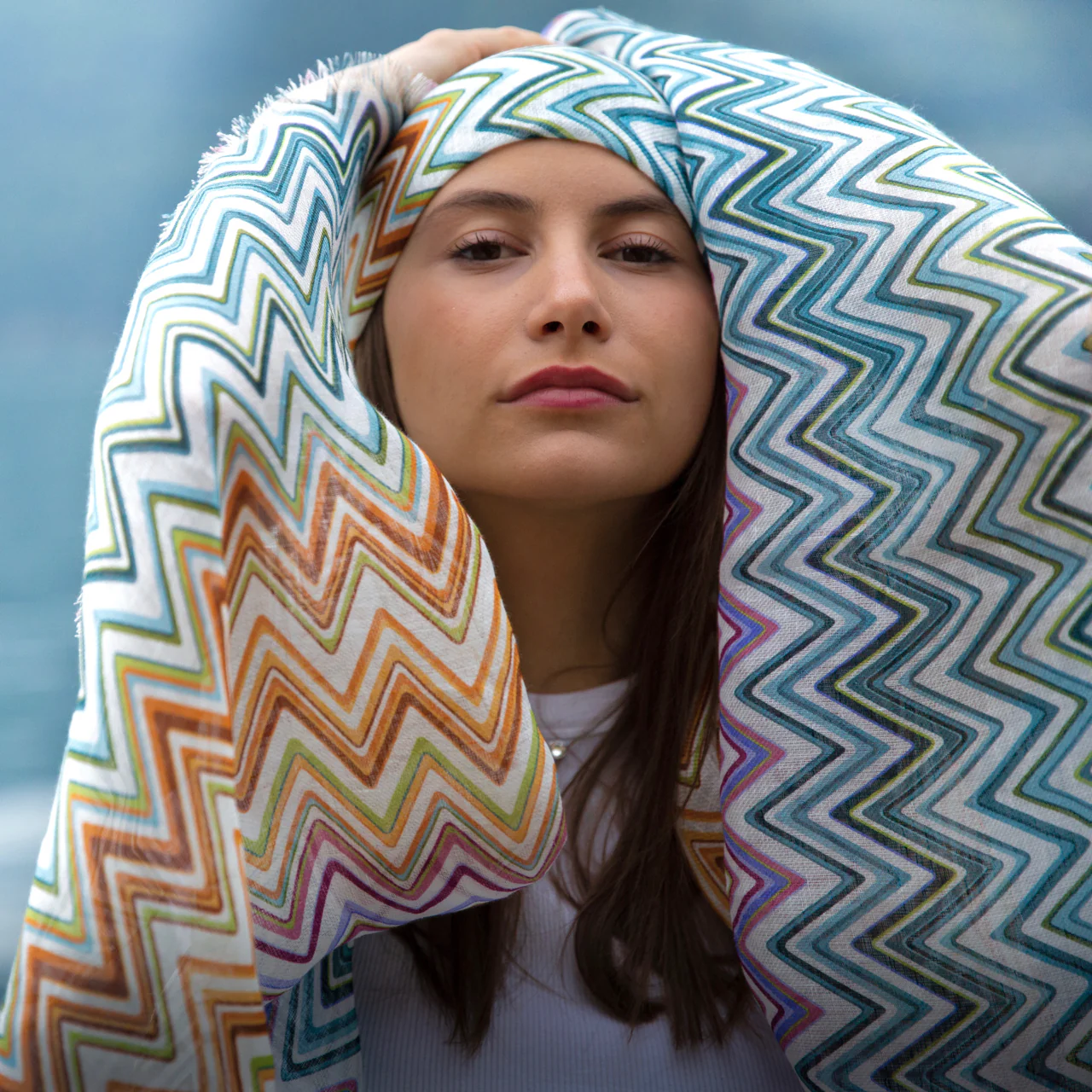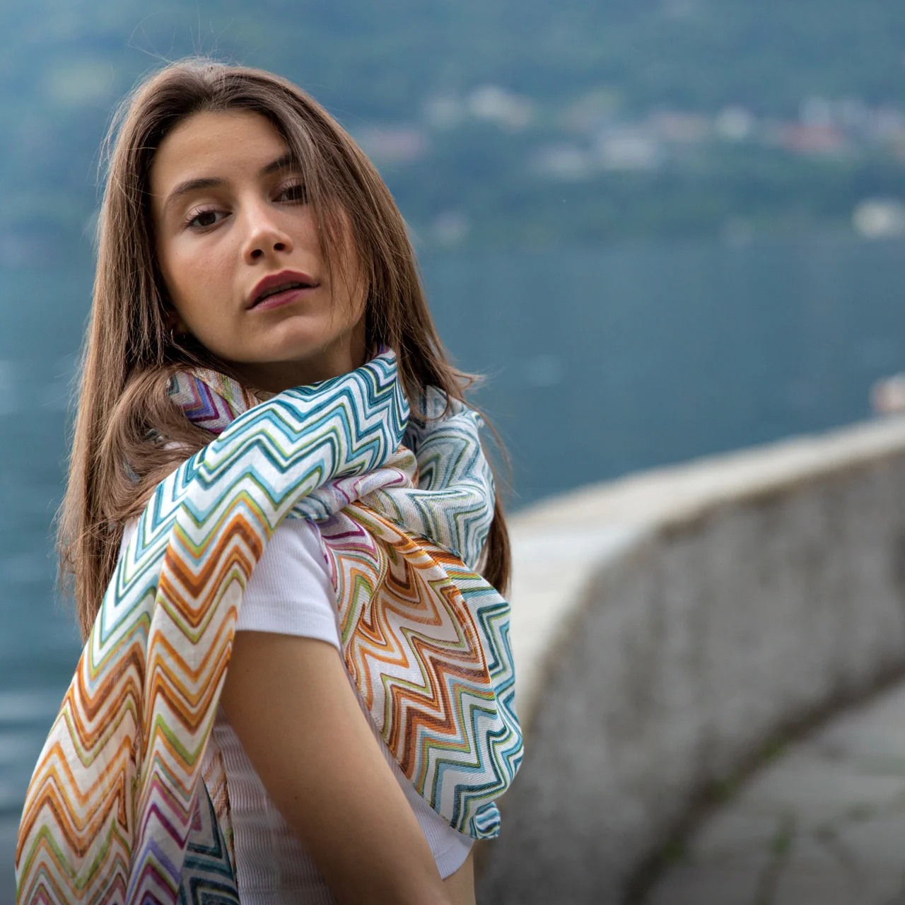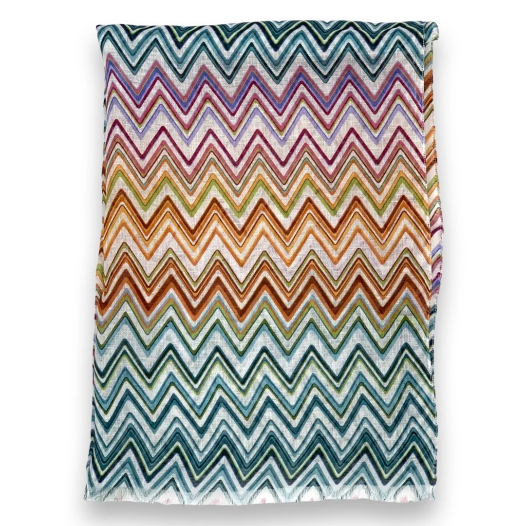 Stola di puro lino stampato disegno zig-zag multicolor cm 70×200 Cod 740