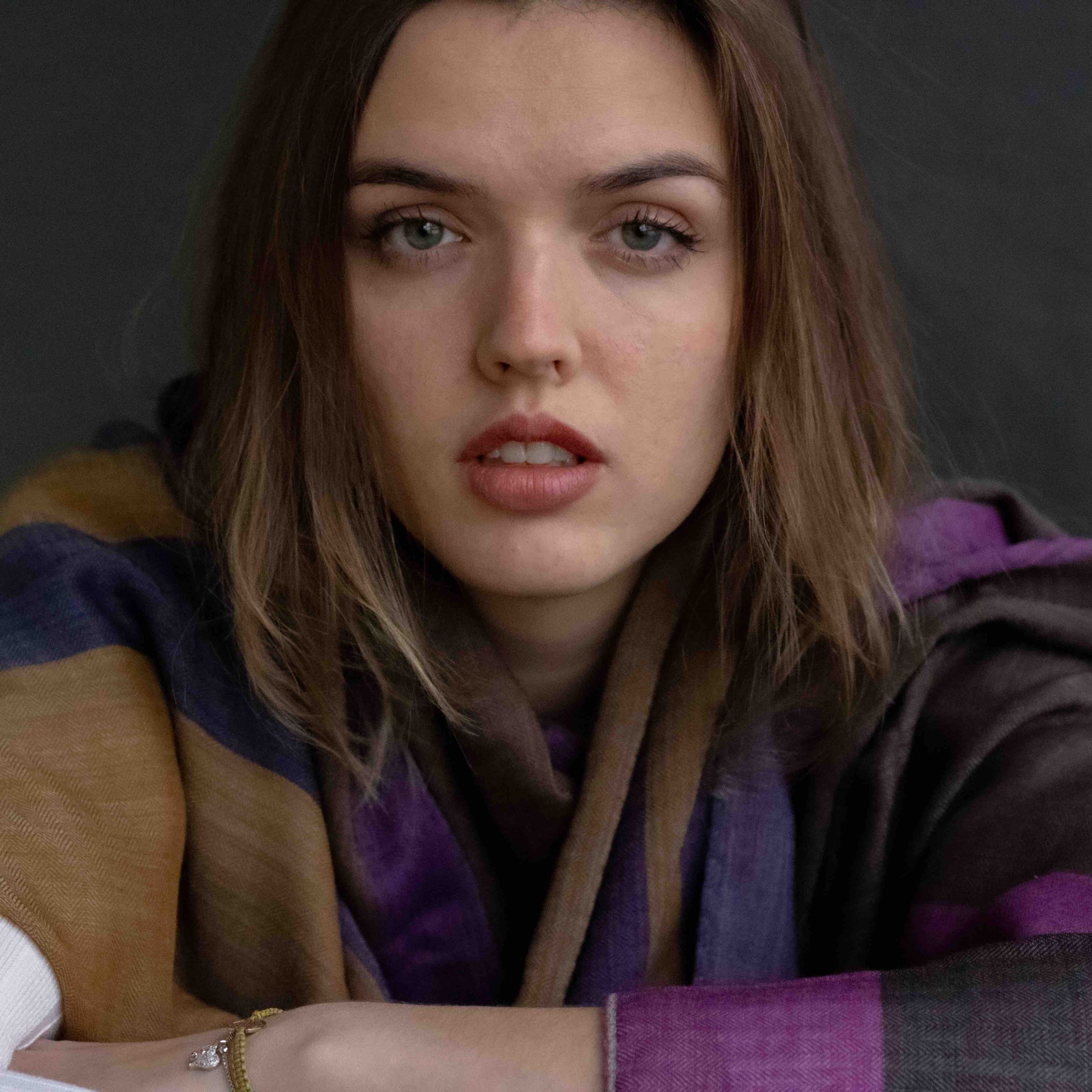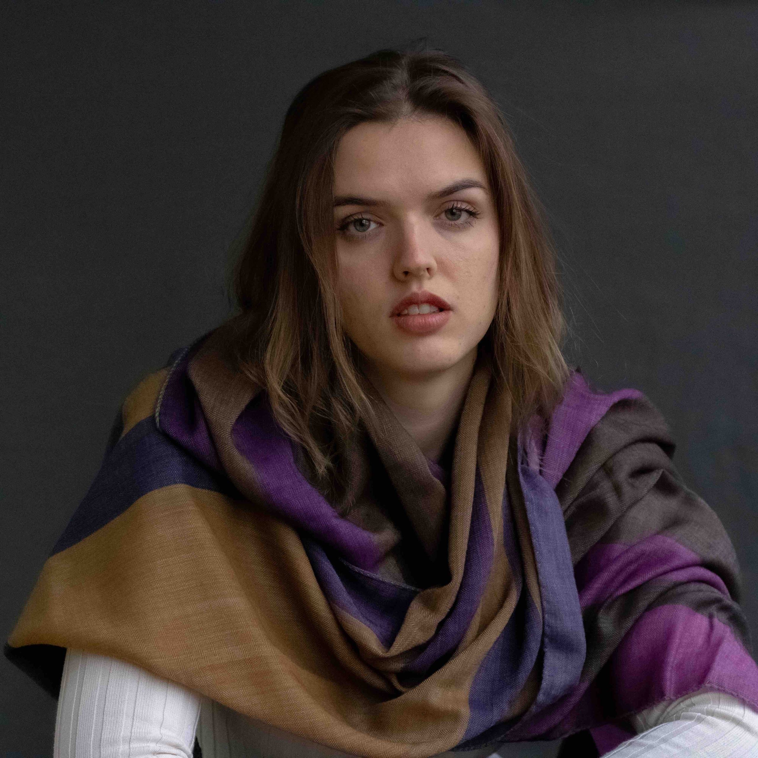 Stola stampata Made in Italy 100% lana, disegno sfumato.