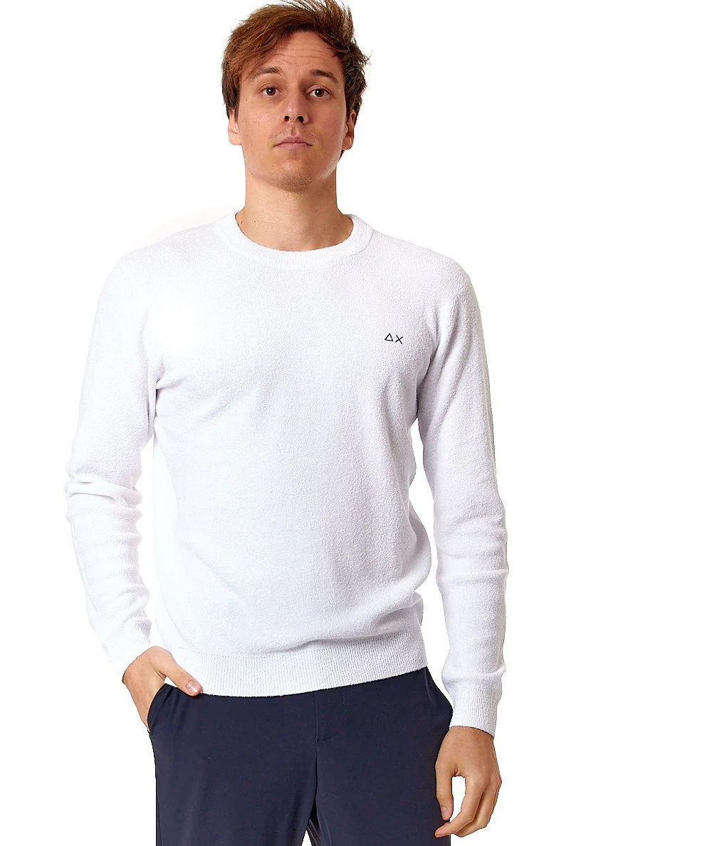 SUN68 MAGLIA IN COTONE ROUND NECK BOUCLE K34125 BIANCO